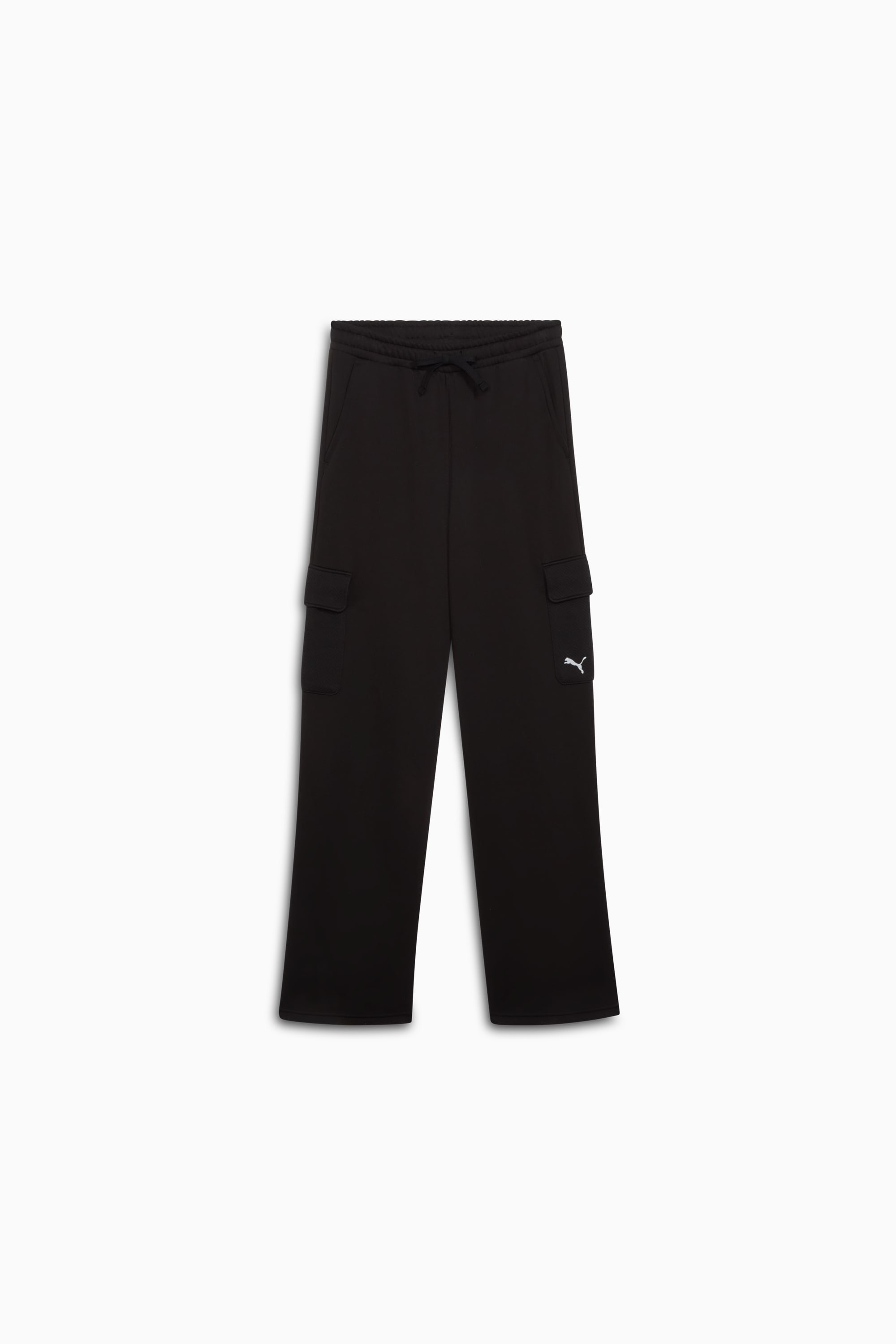 PRODUCT STORY Keep it sporty and practical with these comfortable cargo pants. Featuring a straight-leg design, jacquard cargo pockets, and hand pockets for all your essentials. The elastic waistband with drawstring provides adjustability for easy wear. Perfect for relaxing or running errands, PUMA delivers versatility with a touch of everyday convenience. FEATURES & BENEFITS - Made with at least 50% recycled materials DETAILS - Style: 690349_01 - Color: PUMA Black - Fit: Comfort - Main Material: Fleece - Rise: High - Pockets: Cargo Pocket;Side Pocket MATERIAL INFORMATION - Patch Pocket: 64% cotton, 36% polyester - Upper Pocket Bag: 100% cotton - Shell: 66% cotton, 34% polyester