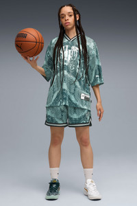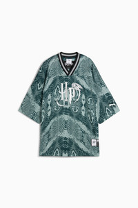 PRODUCT STORY The all-new PUMA HOOPS x HARRY POTTER™ collection is a mysterious mashup of basketball and the beloved fantasy series. Featuring a full range of apparel, footwear, and accessories, this collection is ready for anything, whether you live in the magical world or the muggle world. Apparel designs include basketball mesh shorts and comfy pre-game sweat gear, all with Harry Potter™–inspired graphics. FEATURES & BENEFITS - Made with 100% recycled material excluding trims & decorations DETAILS - Style: 633113_01 - Color: Green Terrain-AOP - Fit: Oversized - Fabric: Mesh - Neck: Crew neck - HARRY POTTER™ branding details - PUMA branding details MATERIAL INFORMATION - Shell: 100% polyester - Collar: 100% polyester