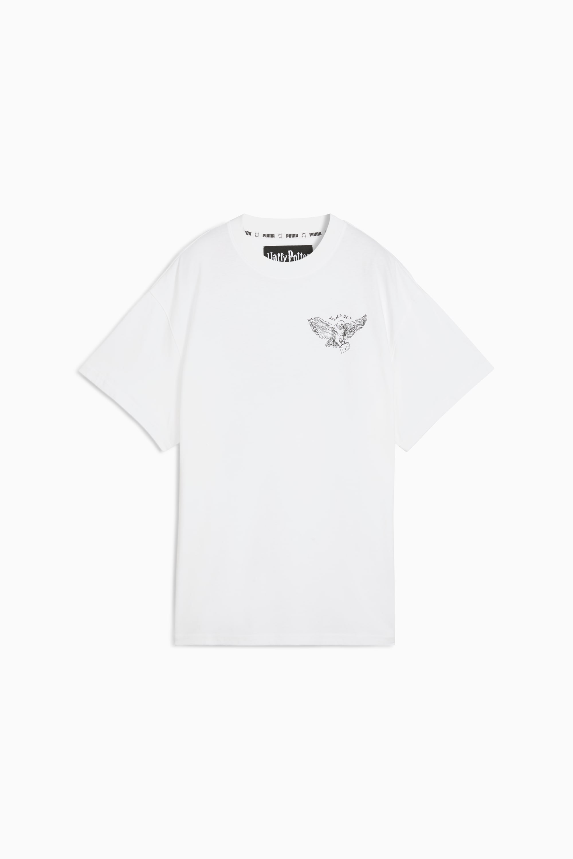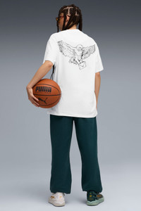 PRODUCT STORY The all-new PUMA HOOPS x HARRY POTTER™ collection is a mysterious mashup of basketball and the beloved fantasy series. Featuring a full range of apparel, footwear, and accessories, this collection is ready for anything, whether you live in the magical world or the muggle world. Apparel designs include basketball mesh shorts and comfy pre-game sweat gear, all with Harry Potter™–inspired graphics. FEATURES & BENEFITS - Made with at least 20% recycled cotton DETAILS - Style: 633115_01 - Color: PUMA White - Fit: Oversized - Sleeves: Short sleeves - Collar: Ribbed collar - HARRY POTTER™ branding details - PUMA branding details MATERIAL INFORMATION - Shell: 100% cotton - Rib: 71% cotton, 29% polyester