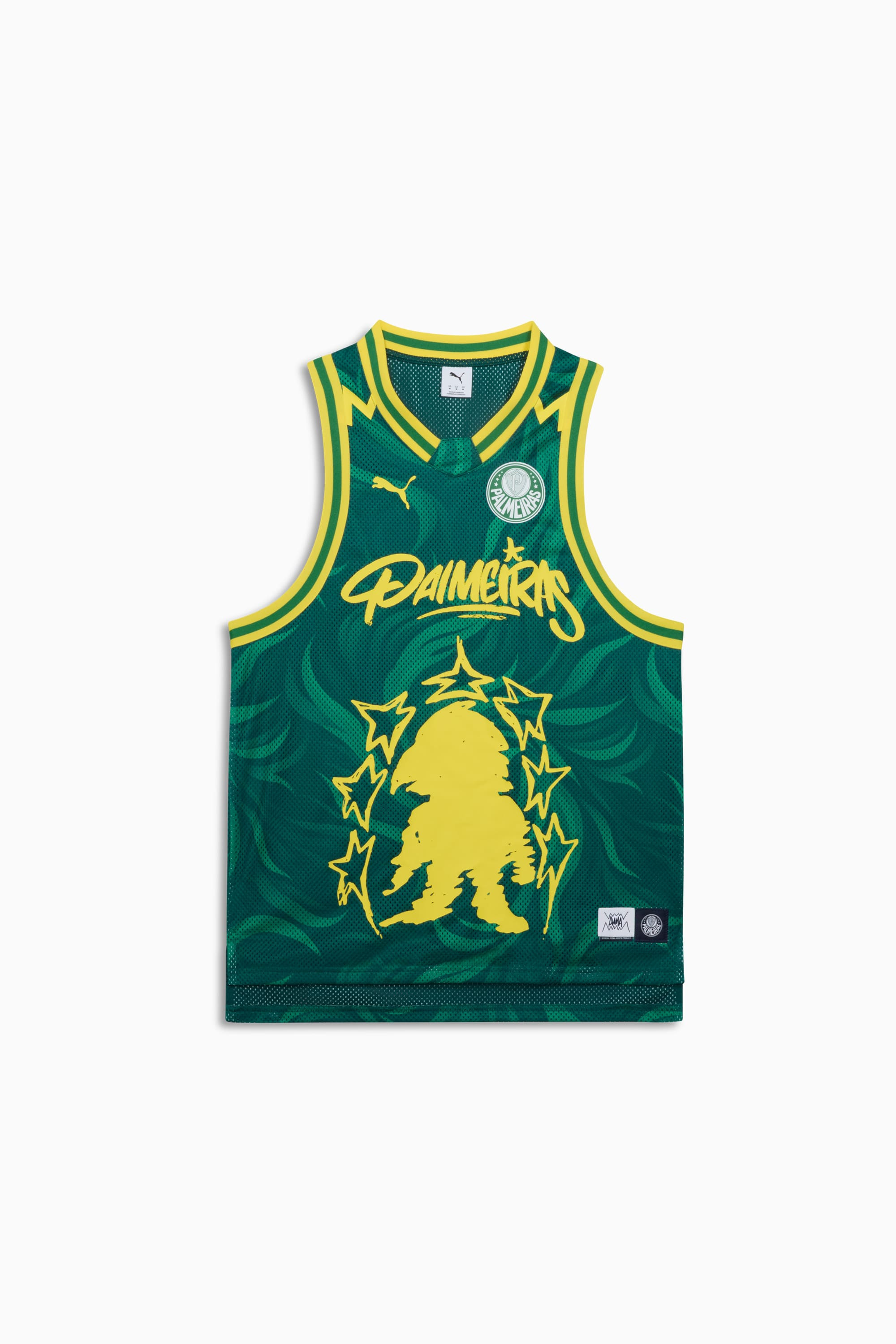 PRODUCT STORY Suit up in winning style with the PUMA HOOPS x SE Palmeiras basketball jersey. This jersey brings together basketball-inspired design and the proud heritage of SE Palmeiras, perfect for fans and players alike. Crafted from high-quality fabric, it's built for comfort whether you're on the court or showing your club pride in the stands. FEATURES & BENEFITS - Made with 100% recycled material excluding trims & decorations DETAILS - Style: 631702_01 - Color: Malachite-Jade Green-AOP - Regular fit - Mesh - Regular length - Crew neck - Sleeveless - SE Palmeiras branding details - PUMA HOOPS branding details MATERIAL INFORMATION - Lining: 100% polyester - Shell: 100% polyester