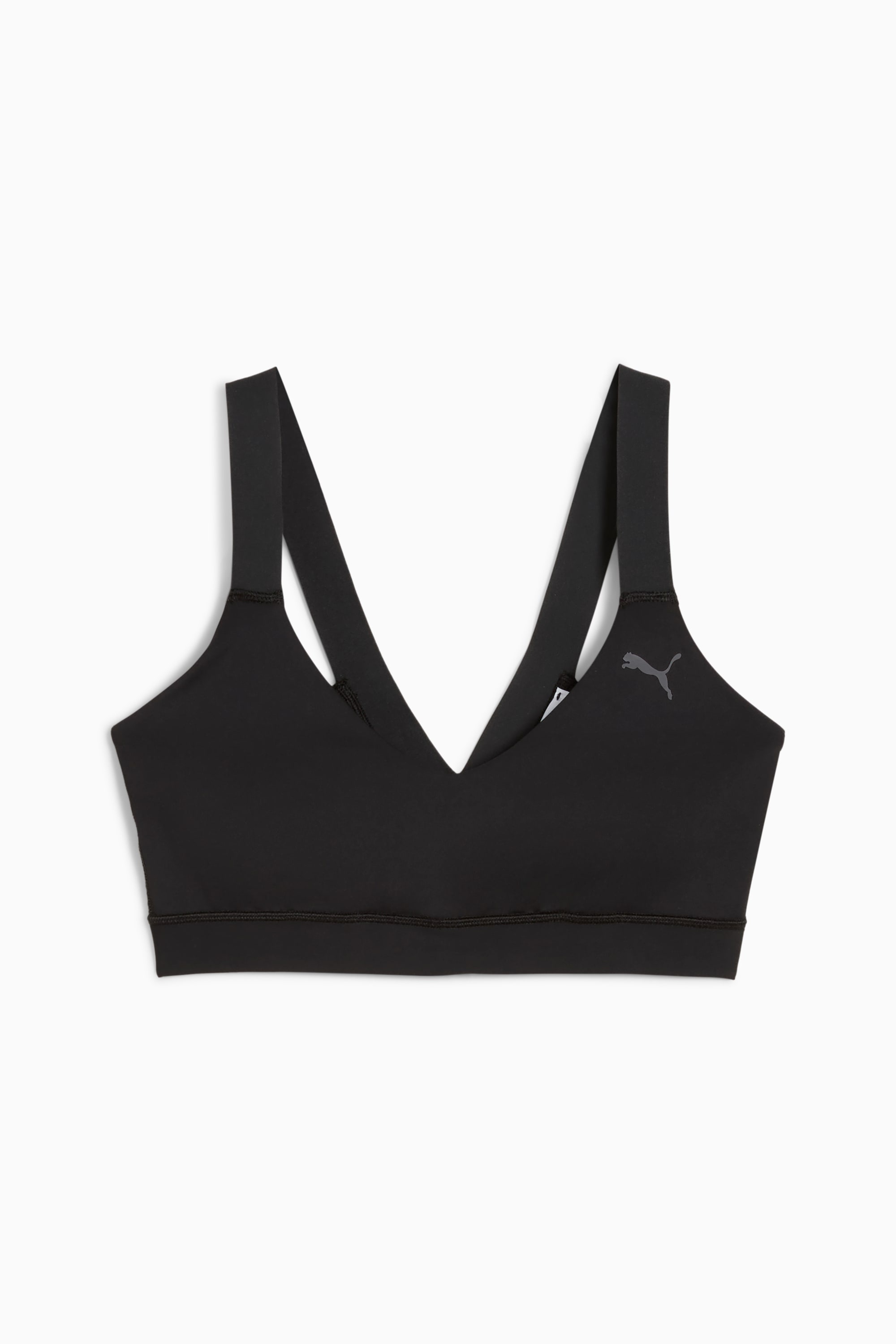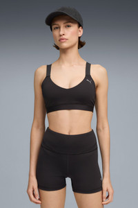 PRODUCT STORY Turn up the heat and move with confidence in this low-impact bra. Featuring moisture-wicking dryCELL technology, removable pads for a personalized fit, and unrestricted support for your studio sessions or daily flow. Designed for movement, powered by you. FEATURES & BENEFITS - dryCELL: Performance technology designed to wick moisture from the body and keep you free of sweat during exercise - Made with at least 50% recycled materials. DETAILS - Style: 527479_01 - Color: PUMA Black - Fit: Tight - Main material: Interlock - Sleeveless - Length: Regular - Removable pads - Support: low-impact sports MATERIAL INFORMATION - Strap: 62% nylon, 38% elastane - Lining: 94% polyester, 6% elastane - Shell: 77% polyester, 23% elastane