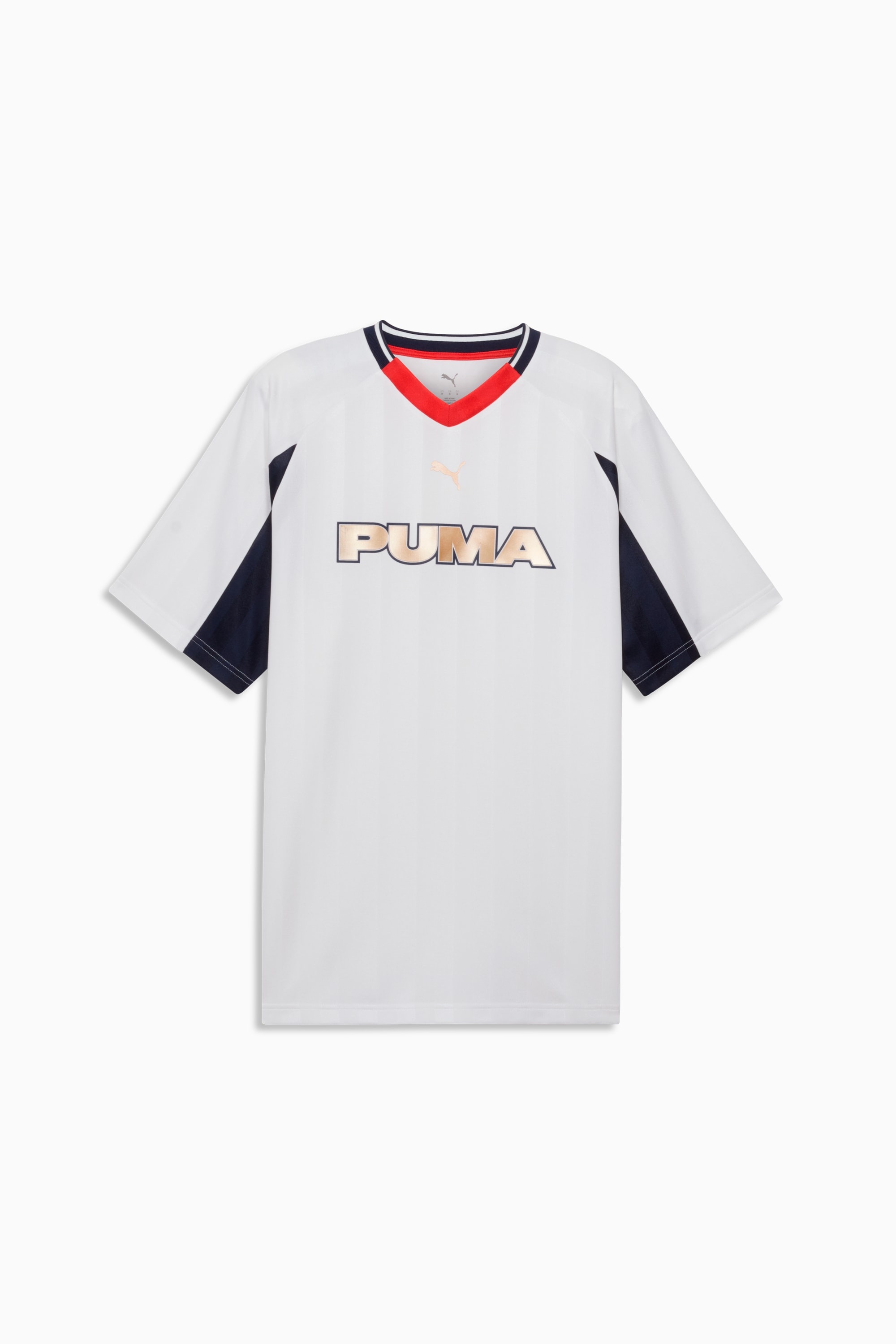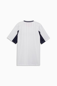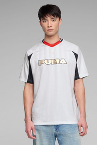 PRODUCT STORY Level up your style with the PUMA Sport collection. Inspired by the world of motorsports, these casual essentials are the perfect blend of sporty vibes and streetwear appeal. Staples like hoodies, t-shirts, shorts, and sweatpants get a fresh update with piping and color-blocked design details, creating a look that's modern and effortlessly wearable. FEATURES & BENEFITS - Made with at least 90% recycled materials. DETAILS - Style: 634322_02 - Color: PUMA White - Fit: Relaxed - Main material: Pique - Neck: V-Neck - Short sleeves - Length: Regular MATERIAL INFORMATION - Inserts: 100% polyester - Shell: 100% polyester - Rib: 97% polyester, 3% elastane