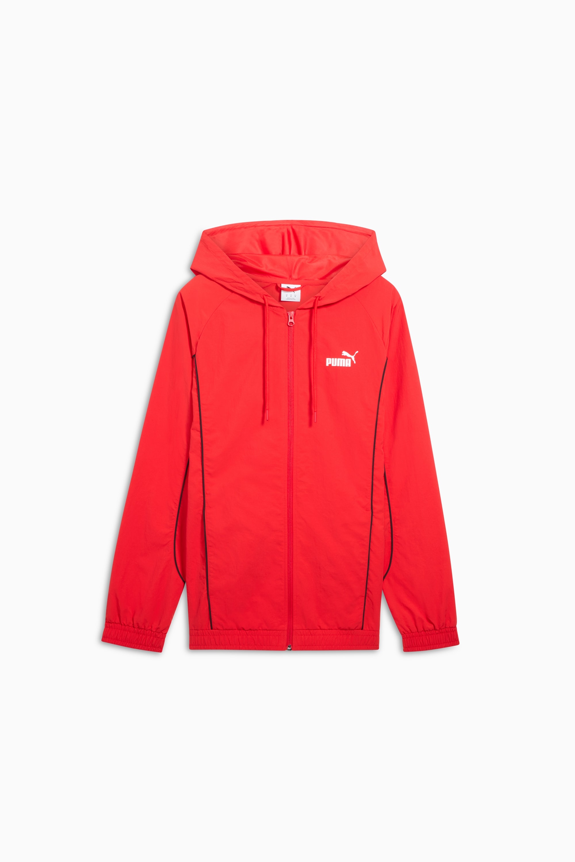 PRODUCT STORY Stay prepared for anything with this lightweight layer. Featuring a hood with an adjustable drawcord for a personalized fit. Elastic cuffs and piping details combine performance and style. Ideal for city commutes or outdoor workouts. Classic PUMA energy. FEATURES & BENEFITS - Made with 100% recycled materials excluding trims & decorations DETAILS - Style: 691495_11 - Color: For All Time Red - Fit: Regular - Main Material: Plain weave - Hooded - Long sleeves - Fastener: Full zip - Pockets: Seam Pocket MATERIAL INFORMATION - Hood Lining: 100% polyester - Shell: 100% nylon
