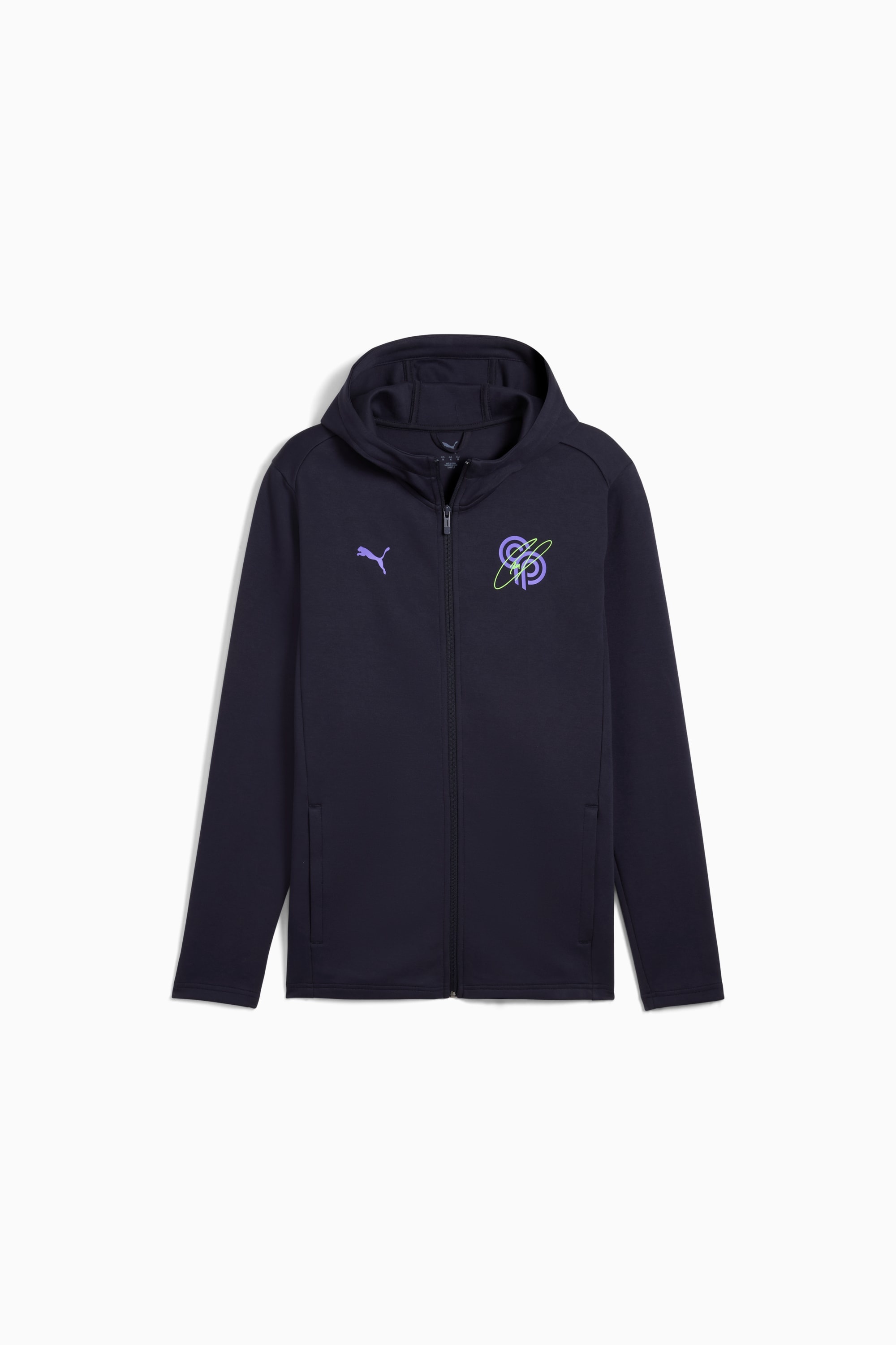 PRODUCT STORY This full zip hoodie brings bold style and performance together in this exclusive PUMA x CP collection. Inspired by Christian Pulisic's journey and the Ultra boots he wears, this hoodie features striking graphics and a fresh color palette. It balances casual wear and athletic performance, making it an essential piece for fans chasing their own dreams. FEATURES & BENEFITS - Made with at least 20% recycled materials DETAILS - Style: 660074_10 - Color: New Navy - Regular fit - Main material: Single jersey - Regular length - Hood - Full zip - Long sleeves - Side pocket - Elasticated cuffs - PUMA Cat logo placed on right chest - CP logo on left chest MATERIAL INFORMATION - Shell: 77% cotton, 23% polyester