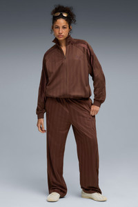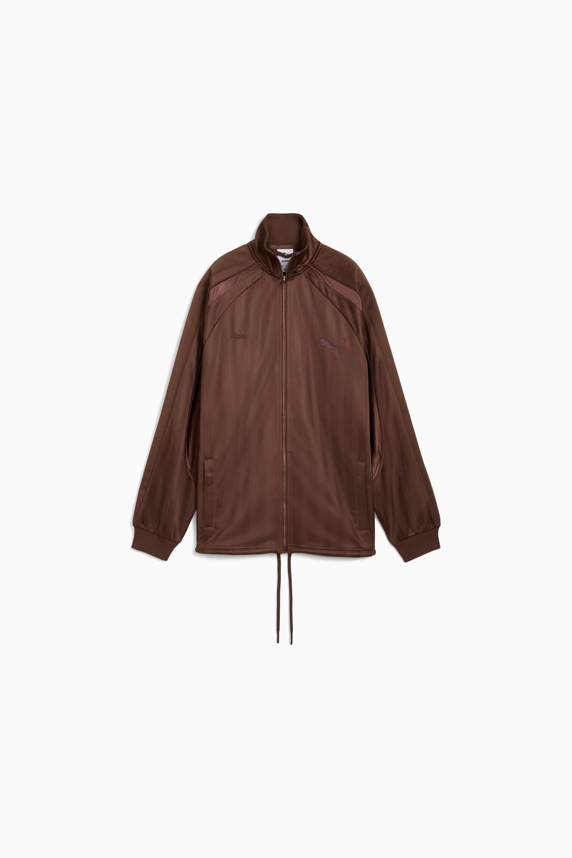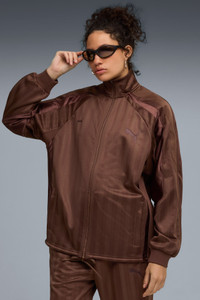 PRODUCT STORY New York designer Danielle Guizio launched her namesake label in 2014 and has been redefining style ever since. With designs marked by subversive sensuality and unapologetic boldness, Guizio now brings her signature aesthetic to PUMA’s sport heritage. The new PUMA x GUIZIO drop reimagines the iconic T7 tracksuit, paired with a sleek track top, pleated sport skirt, and a fresh spin on the H-Street sneaker. DETAILS - Style: 632558_93 - Color: Chestnut Brown - Regular fit - Full zip closure with two-way metal zip - Long sleeves with elasticated cuffs - Side zip pockets - Hem with drawcords - PUMA x GUIZIO co-branding details MATERIAL INFORMATION - Gusset: 67% polyester, 33% cotton - Inserts: 100% polyester - Inner Collar: 67% polyester, 33% cotton - Upper Pocket Bag: 100% cotton - Shell: 100% polyester - Sidepanel: 67% polyester, 33% cotton - Rib: 97% polyester, 3% elastane - Overlay: 67% polyester, 33% cotton