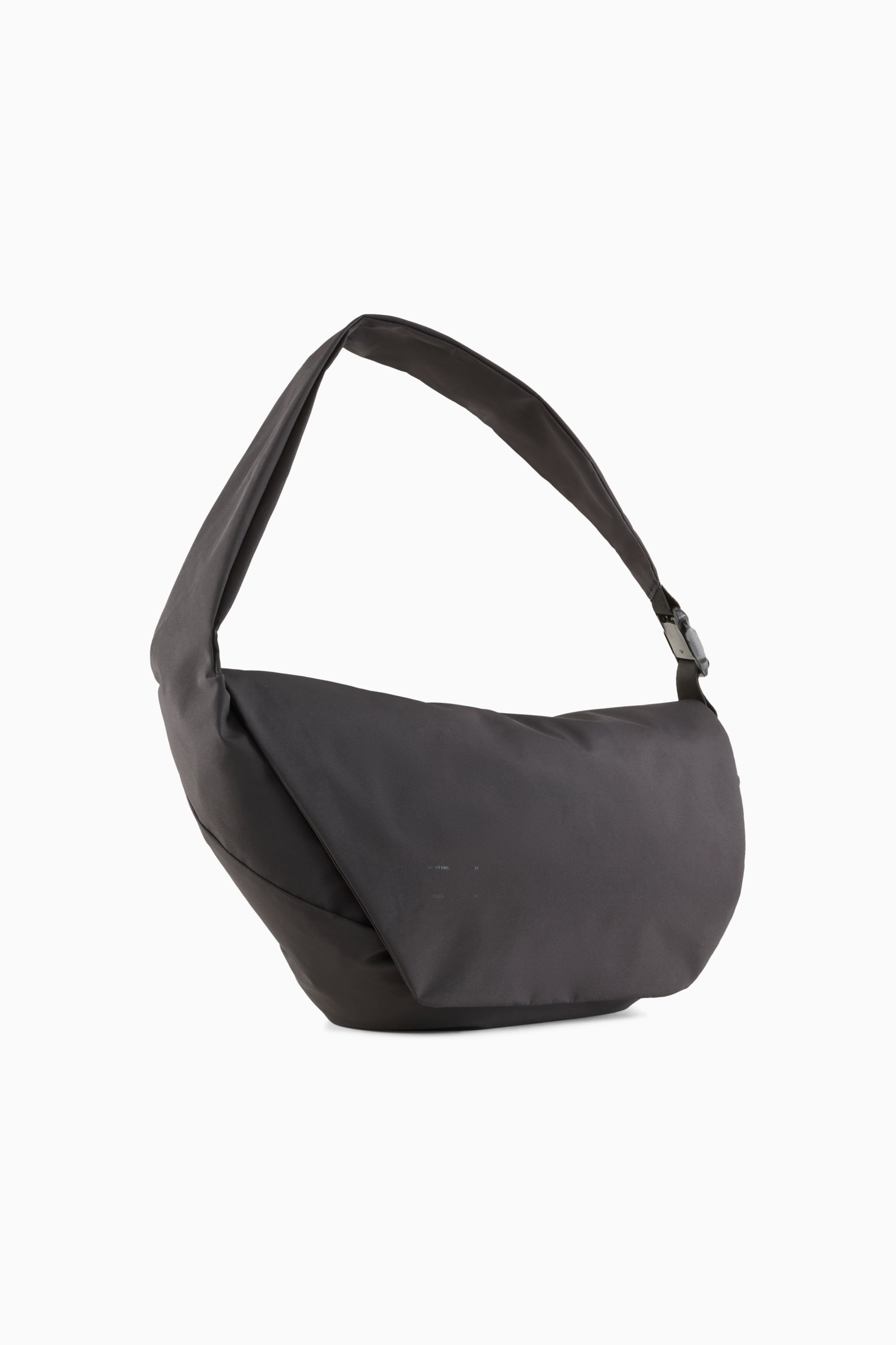 PRODUCT STORY This season's edition of PUMA x HELIOT EMIL is a progressive collab fusing trail running and fashion. Hybridising PUMA's performance heritage with Heliot Emil's industrial monochromatic vision, materials are both lightweight and functional. Part of the collection is this expandable sling bag. It features a removable wrist band with slip in pocket which can be fully detached from the bag and used individually. The shoulder strap has a soft foam padding for more comfortable wear. FEATURES & BENEFITS - Made with at least 50% recycled materials. DETAILS - Style: 091208_01 - Color: PUMA Black - Expandable gusset to increase bag size - Coated zip opening under flap with magnetic closure - Expandable part is lined with perforated fabric - Removable wrist band with slip in pocket which can be fully detached from bag to use individually - Shoulder strap with soft foam padding for comfortable wear - Small interior slip in pocket - Strap can be unfastened using a concealed buckle - Dimensions: W40cm / D18cm / H34cm - Volume: 13L - PUMA x HELIOT EMIL co-branding details MATERIAL INFORMATION - Lining: 100% polyester - Shell: 100% polyester - Inner Pocket: 83% polyester, 17% elastane