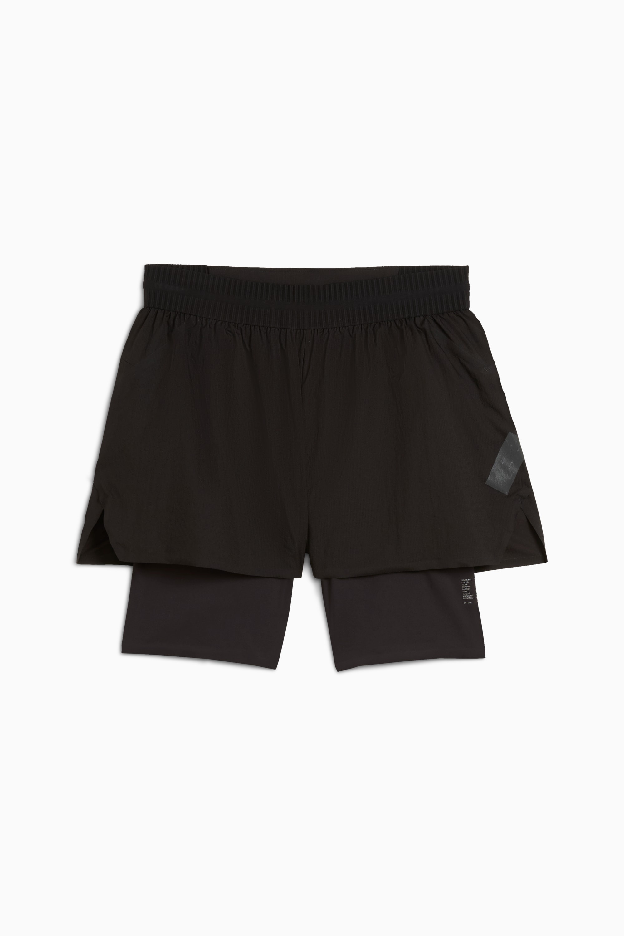 PRODUCT STORY This season's edition of PUMA x HELIOT EMIL is a progressive collab fusing trail running and fashion. Hybridizing PUMA's performance heritage with Heliot Emil's industrial monochromatic vision, materials are both lightweight and functional. Part of the collection, these 2-in-1 shorts have laser-cut bonded seams for less friction and more comfort along with an engineered waistband with internal drawcords for a customised fit. PUMA's dryCELL tech helps to wick away moisture and keep you feeling cool and composed. FEATURES & BENEFITS - dryCELL: Performance technology designed to wick moisture from the body and keep you free of sweat during exercise - Water-repellent - Made with at least 50% recycled materials DETAILS - Style: 629492_01 - Color: PUMA Black - Regular fit - Main material: Interlock - Above knee length - Laser cut bonded seams - Medium rise - Engineered waistband with internal drawcords - Upper shorts: back zip pocket - Upper shorts: side slits - Compression tights: side pocket big enough to fit a mobile phone MATERIAL INFORMATION - Bottom Waistband: 100% polyester - Inner Shell: 77% polyester, 23% elastane - Back Pocket Bag: 100% nylon