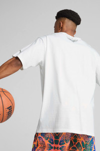 PRODUCT STORY Featuring LaMelo Ball and PUMA Hoops branding, this relaxed-fit tee is your go-to for laid-back adventures around the basketball playground. It brings effortless style to your basketball locker room. Embrace the Melo vibe and stand out effortlessly. FEATURES & BENEFITS - Made with at least 20% recycled cotton DETAILS - Style: 630678_01 - Color: PUMA White - Relaxed fit - Short sleeves - Regular length - Medium rise - LaMelo Ball branding details - PUMA branding details MATERIAL INFORMATION - Shell: 100% cotton - Rib: 71% cotton, 29% polyester