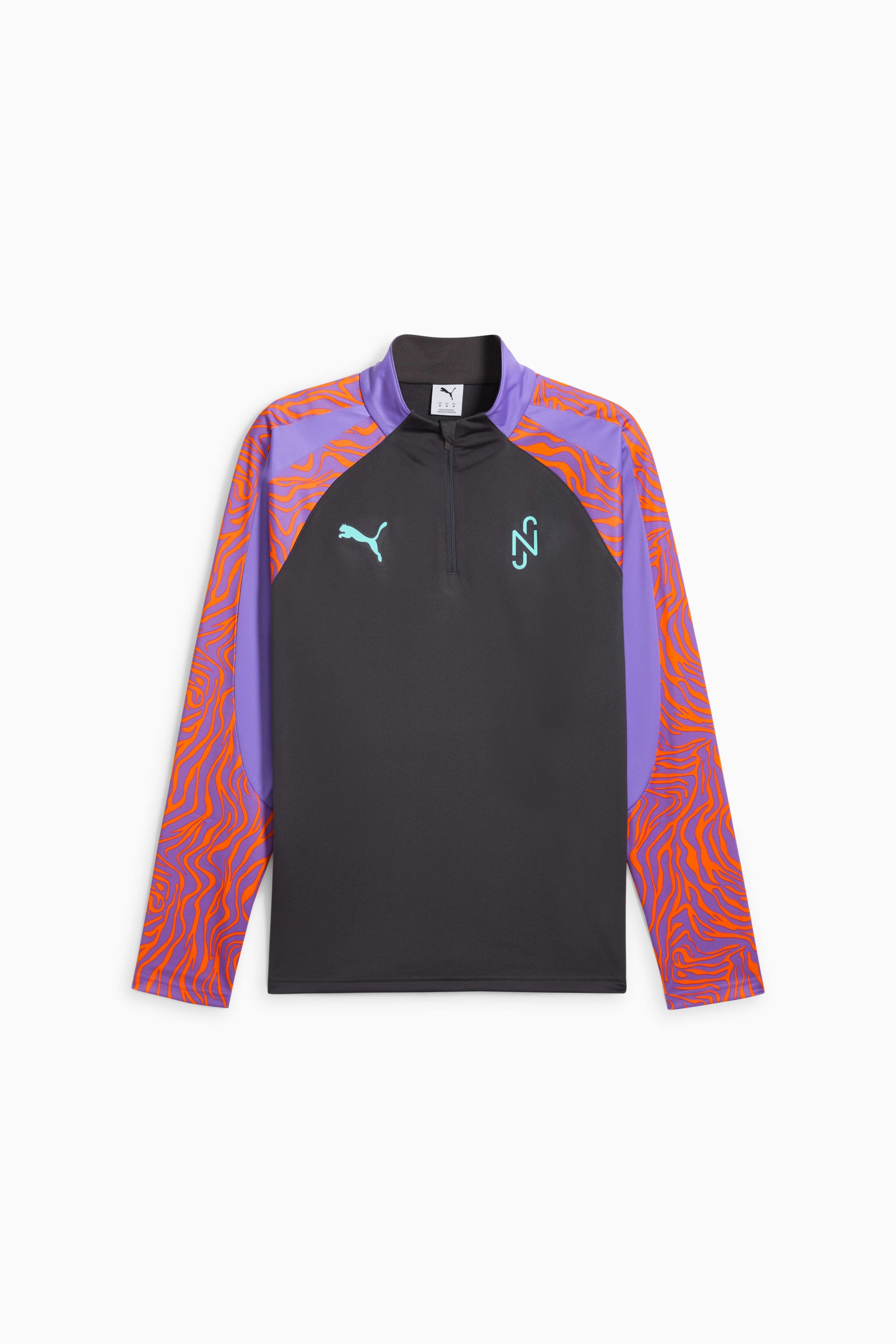 PRODUCT STORY Unleash your inner playmaker with PUMA's latest drop! The new NJR collection takes a fresh twist with a link-up with Melo from the Hoops universe. Featuring an all-over print on sleeves, NJR and PUMA Cat logos, and a quarter-zip, this regular-fit top with dryCELL technology keeps you fresh while you dominate the game. FEATURES & BENEFITS - Made with 100% recycled material excluding trims & decorations - dryCELL: Performance technology designed to wick moisture from the body and keep you free of sweat during exercise DETAILS - Style: 686896_01 - Color: Dark Coal-Soft Violet - Regular fit - Flat ink matt heat transfer PUMA Cat logo on right of chest - Long sleeves - All-over print on sleeves - NJR logo placed on left chest for a signature touch - PUMA branding details MATERIAL INFORMATION - INNER COLLAR: 100% polyester - SHELL: 100% polyester - SLEEVE: 100% polyester