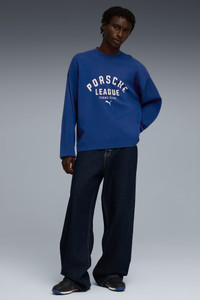 PRODUCT STORY For those who move with effortless confidence, the newest PUMA x PORSCHE LEGACY drop merges vintage sport aesthetics with a modern streetwear edge. Relaxed silhouettes, sun-faded neutrals, and worn-in textures create a laid-back, well-loved feel. Graphic tees, oversized outerwear, and washed leather offer a rugged yet refined look, perfect for effortless summer days and nights that never stop. FEATURES & BENEFITS - Made with at least 30% recycled materials. DETAILS - Style: 632675_14 - Color: Clyde Royal - Fit: Relaxed - Main material type: Sweater - Long sleeves - Crew neck - Regular length - Porsche League Turbo club graphic on the front MATERIAL INFORMATION - Shell: 60% cotton, 40% polyester - Rib: 58% cotton, 38% polyester, 3% nylon, 1% elastane