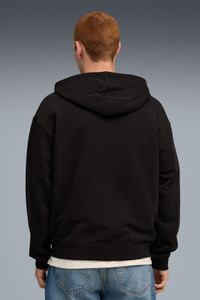 PRODUCT STORY For those who move with effortless confidence, the newest PUMA x PORSCHE LEGACY drop merges vintage sport aesthetics with a modern streetwear edge. Relaxed silhouettes, sun-faded neutrals, and worn-in textures create a laid-back, well-loved feel. Graphic tees, oversized outerwear, and washed leather offer a rugged yet refined look, perfect for effortless summer days and nights that never stop. FEATURES & BENEFITS - Made with at least 50% recycled materials DETAILS - Style: 632677_01 - Color: PUMA Black - Fit: Relaxed - Main material type: French Terry - Hooded with drawstring - Full-zip closure - Pockets: Kangaroo pocket - Regular length - Distressed details - Porsche League Turbo Club graphic on the front MATERIAL INFORMATION - Inserts: 100% cotton - Hood Lining: 68% cotton, 32% polyester - Shell: 68% cotton, 32% polyester - Rib: 97% cotton, 3% elastane