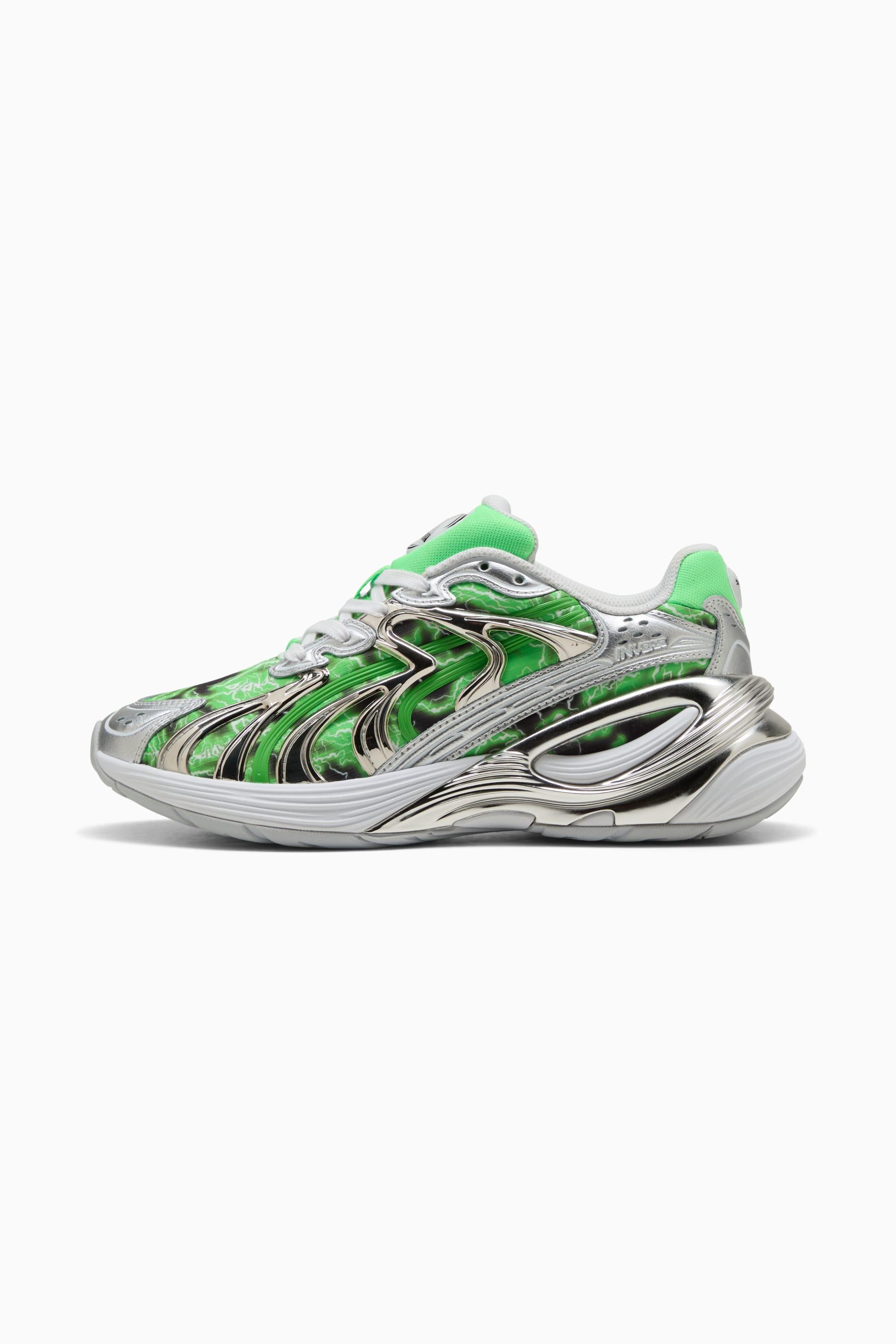 PRODUCT STORY Nermal is back for more. Did you miss him? PUMA is partnering with Los Angeles based streetwear and lifestyle brand RIPNDIP for an out-of-the-box collection of footwear, apparel, and accessories. This collection features a mix of classic streetwear essentials and pieces centered around mind-bending graphics. DETAILS - Style: 403649_01 - Color: PUMA Silver-Fluro Green Pes - Regular fit - Rounded toe - Fastener: Laces - Heel type: Flat - PUMA x RIPNDIP co-branding details MATERIAL INFORMATION - Midsole: 100% Synthetic - Sockliner: 100% Textile - Outsole: 100% Rubber - Upper: 44.70% Textile, 38.60% Leather - cow, 16.70% Synthetic - Lining: 100% Textile