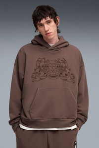 PRODUCT STORY Nermal is back for more. Did you miss him? PUMA is partnering with Los Angeles based streetwear and lifestyle brand RIPNDIP for an out-of-the-box collection of footwear, apparel, and accessories. This collection features a mix of classic streetwear essentials and pieces centered around mind-bending graphics. FEATURES & BENEFITS - Made with at least 20% recycled cotton. DETAILS - Style: 632414_41 - Color: Flat Bronze - Boxy fit - Long sleeves - Hooded (without drawcords) - Graphic print details - PUMA x RIPNDIP co-branding details MATERIAL INFORMATION - Hood Lining: 100% cotton - Shell: 100% cotton