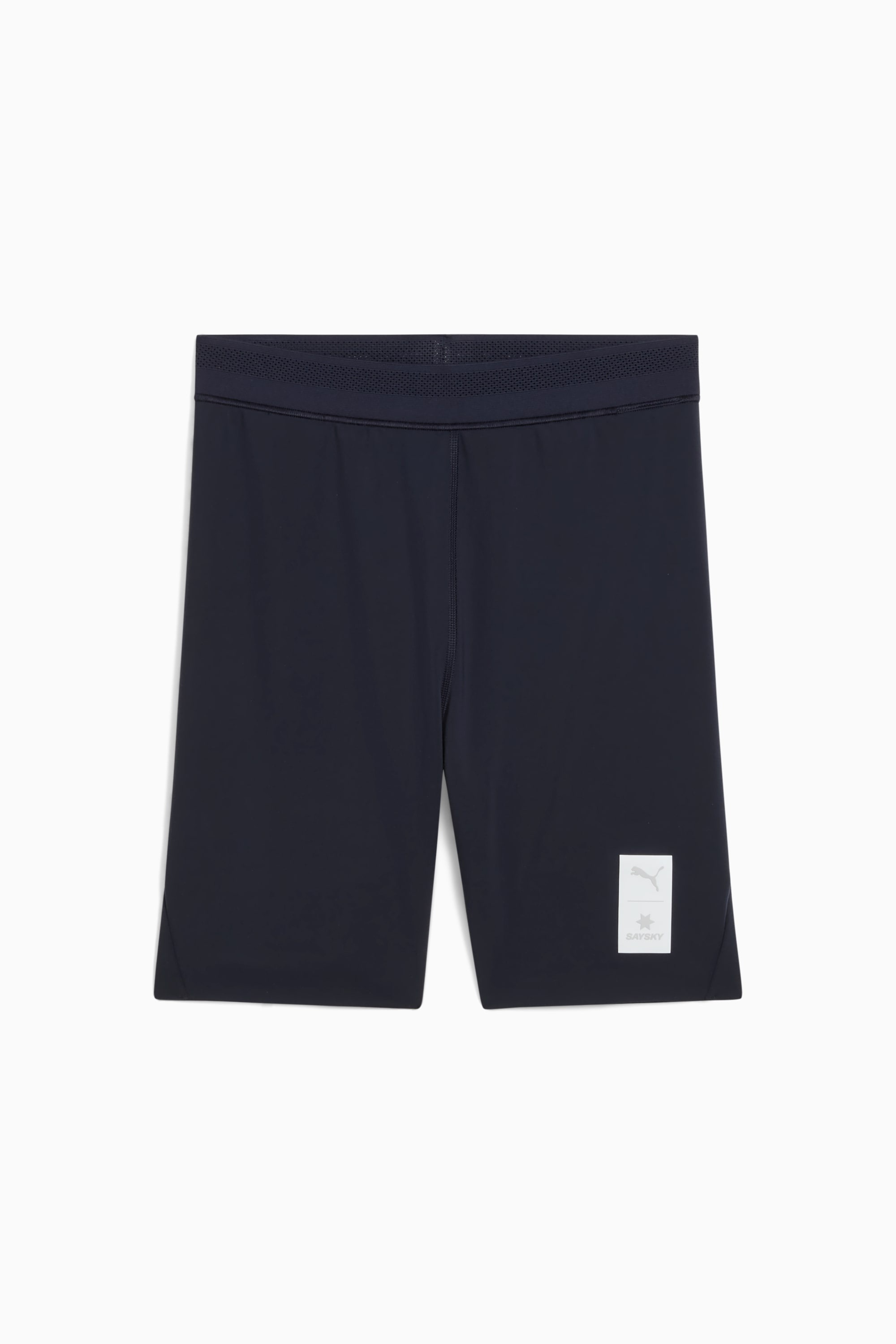 PRODUCT STORY Run with confidence and style. These 7-inch short tights, crafted with precision, offer drop-in pocket storage solutions and a drawstring for a perfect fit. Designed in collaboration with Saysky, they blend functionality with a sleek, modern look. FEATURES & BENEFITS - dryCELL: Performance technology designed to wick moisture from the body and keep you free of sweat during exercise DETAILS - Style: 526837_16 - Color: New Navy - Regular fit - Interlock fabric - Above knee length - Medium rise - PUMA x SAYSKY branding details MATERIAL INFORMATION - Bottom Waistband: 89% polyester, 11% elastane - Shell: 82% polyester, 18% elastane