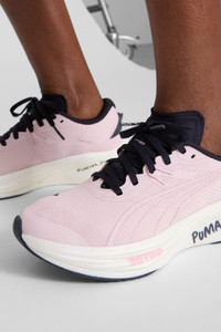 PRODUCT STORY Experience unparalleled propulsion in your everyday training runs. Featuring NITROFOAM™ cushioning, PWRPLATE propulsion, and PUMAGRIP traction, the Deviate 3 delivers a snappy, energised ride. Engineered mesh and PWRTAPE ensure breathability and support. Feel unstoppable. FEATURES & BENEFITS - The upper of the shoes is made with at least 30% recycled materials - NITROFOAM™: Our innovative Nitrogen-infused foam technology is lightweight and provides explosive energy stride after stride, while PROFOAM provides stability and durability - PWRPLATE: Carbon fibre plate engineered to stabilise the midsole while maximising energy transfer DETAILS - Style: 311059_01 - Color: Rose Mauve-New Navy - Engineered mesh upper - Shoe weight: 265g (UK size 8) - Heel-to-toe drop: 10mm - Recommended for: neutral pronators - PUMA branding details MATERIAL INFORMATION - Midsole: 100% Synthetic - Sockliner: 100% Textile - Outsole: 100% Rubber - Upper: 63% Textile, 37% Synthetic - Lining: 100% Textile