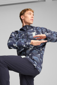 PRODUCT STORY Step up your running game with PUMA's ultra-light jacket, featuring ULTRAWEAVE fabric for enhanced movement and dryCELL technology to keep you dry. Secure pockets and bonded cuffs add convenience and style. Embrace the energy and run with confidence. FEATURES & BENEFITS - Made with 100% recycled material excluding trims & decorations - ULTRAWEAVE: Ultra-light, engineered fabric with a structured, 4-way stretch that reduces weight and friction. Built for athletes looking to increase speed and strength - dryCELL: Performance technology designed to wick moisture from the body and keep you free of sweat during exercise DETAILS - Style: 526959_16 - Color: New Navy - Performance fit - Dobby fabric - Regular length - Full zip - Hand Pocket - PUMA x SAYSKY branding details MATERIAL INFORMATION - Shell: 100% polyester - POCKET BAG: 100% polyester