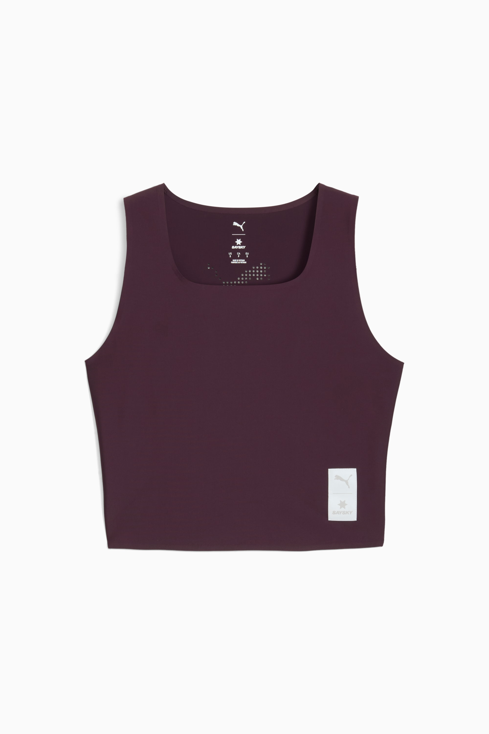 PRODUCT STORY Race day is about more than just the run – it’s a celebration of community, culture, and shared energy. Whether you’re chasing a PR or cheering from the sidelines, the latest PUMA x SAYSKY collection captures the spirit of the sport. Rooted in unity, the collection’s bold, sharp silhouettes capture the discipline and power of the pack - designed to make runners feel unstoppable, together. Collection pieces blend SAYSKY’s bold design language with PUMA’s cutting-edge running technology. The capsule also includes travel-ready essentials made for getting to and from the course. From race to recovery, it’s everything you need to tackle a race weekend in style. FEATURES & BENEFITS - Made with at least 50% recycled materials. - ULTRAFORM: Compressive yet stretchy fabric with contouring designs that perfectly shapes a woman's natural curves. - MOISTURE MANAGEMENT: Technical dryCELL fabrics wick moisture away from the skin to help keep you dry and comfortable - REFLECTIVE design details DETAILS - Style: 527559_88 - Color: Raisin - Fit: Tight - Sleeveless - Neck: Crew neck - Length: Cropped - Back cut-out detail - PUMA x SAYSKY co-branding details MATERIAL INFORMATION - Shell: 78% nylon, 22% elastane