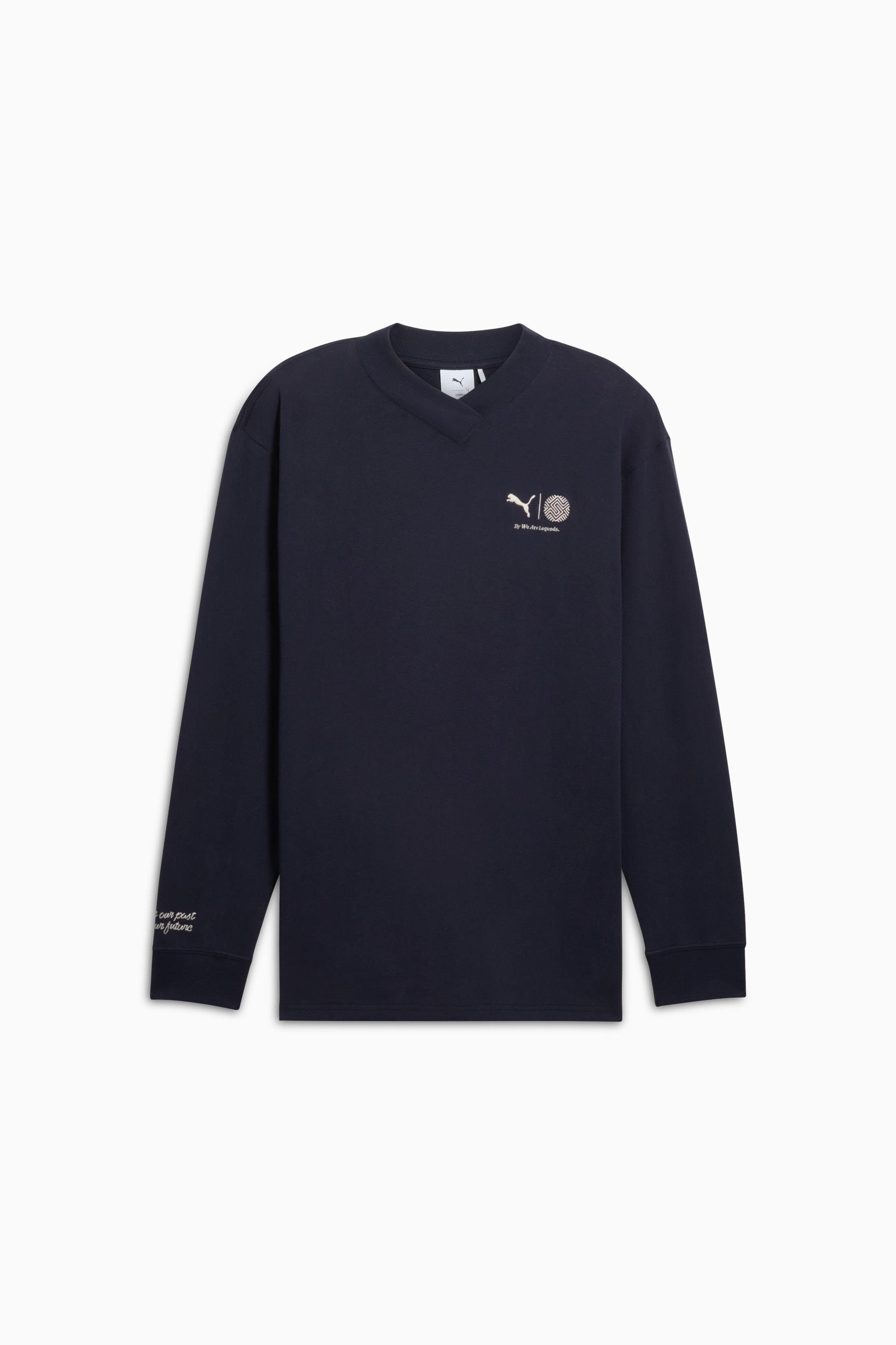PRODUCT STORY Own the moment with dropped shoulders and ribbed details for a relaxed vibe. Bold embroidery and multicolor graphic prints deliver standout energy, while the collaboration logo adds a touch of exclusivity. Perfect for casual hangouts or creative endeavors, this tee keeps you looking sharp. Classic PUMA, always ahead. DETAILS - Style: 631261_16 - Color: New Navy - Fit: Regular - Main Material: Single jersey - Neck: Crew - Long sleeves MATERIAL INFORMATION - Shell: 100% cotton - Rib: 71% cotton, 29% polyester