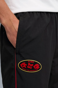 PRODUCT STORY PUMA joins the Blue Blur, Sonic the Hedgehog, and his friends for a new collab. Inspired by the iconic gaming series and the speed of motorsport, PUMA x SONIC THE HEDGEHOG features Sonic, Tails, and Shadow. The collection is full of easter eggs like Gold Ring shoe charms and Chaos Emerald zipper pulls. FEATURES & BENEFITS - Made with 100% recycled material excluding trims & decorations DETAILS - Style: 632411_01 - Color: PUMA Black - Relaxed fit - Full length - Medium rise - Elastic waistband with internal drawcords for customized fit - Oval badge with Sonic symbols and PUMA wording - PUMA x SONIC THE HEDGEHOG co-branding details