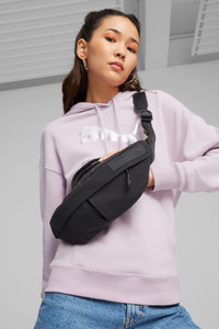 PRODUCT STORY This waistbag embodies PUMA.BL's bold philosophy. In this collection, we rise above labels to celebrate each individual for who they are, beyond judgments and stereotypes. With a sleek aesthetic and functional design, this fanny pack is your perfect companion to face each day with confidence and style. DETAILS - Style: 090395_01 - Color: PUMA Black - Zipped opening in main compartment - Fleece-lined phone pocket on back for easy access - Zipped pocket inside - 150D recycled polyester lining with repeated embossed PUMA Archive logo - Large carrying handle on top - Adjustable strap with opening buckle and D-ring with webbing loop for easy length adjustment - Mesh back panel for enhanced breathability - Metal zipper pulls with PUMA Cat logo - 35 x 8.50 x 14 cm, 2 L MATERIAL INFORMATION - LINING: 100% polyester - SHELL: 100% nylon - MESH: 100% polyester