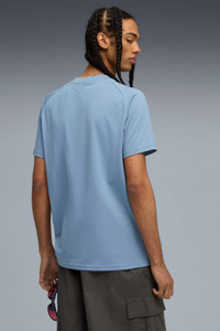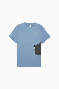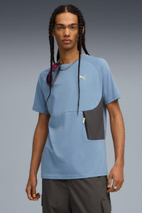 PRODUCT STORY Step up your style game with this tee. Featuring a high-density CAT logo, contrasting color blocks, and a sleek front pocket with a zipper. Stay fresh and ready for anything with PUMA's dryCELL technology. Feel the energy, own the day. FEATURES & BENEFITS - Made with at least 50% recycled materials - dryCELL: Performance technology designed to wick moisture from the body and keep you free of sweat during exercise DETAILS - Style: 629673_34 - Color: Cool Blue-Dusky Gray - Regular fit - Single jersey fabric - Regular length - Crew neck - Short sleeves - PUMA branding details MATERIAL INFORMATION - Patch Pocket: 50% Elastomultiester, 50% polyester - Shell: 65% polyester, 35% cotton - Rib: 70% cotton, 30% polyester
