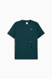 PRODUCT STORY Step up your style game with this tee. Featuring a high-density CAT logo, contrasting color blocks, and a sleek front pocket with a zipper. Stay fresh and ready for anything with PUMA's dryCELL technology. Feel the energy, own the day. FEATURES & BENEFITS - Made with at least 50% recycled materials - dryCELL: Performance technology designed to wick moisture from the body and keep you free of sweat during exercise DETAILS - Style: 629673_75 - Color: Green Terrain - Regular fit - Single jersey fabric - Regular length - Crew neck - Short sleeves - PUMA branding details MATERIAL INFORMATION - Patch Pocket: 50% Elastomultiester, 50% polyester - Shell: 65% polyester, 35% cotton - Rib: 70% cotton, 30% polyester