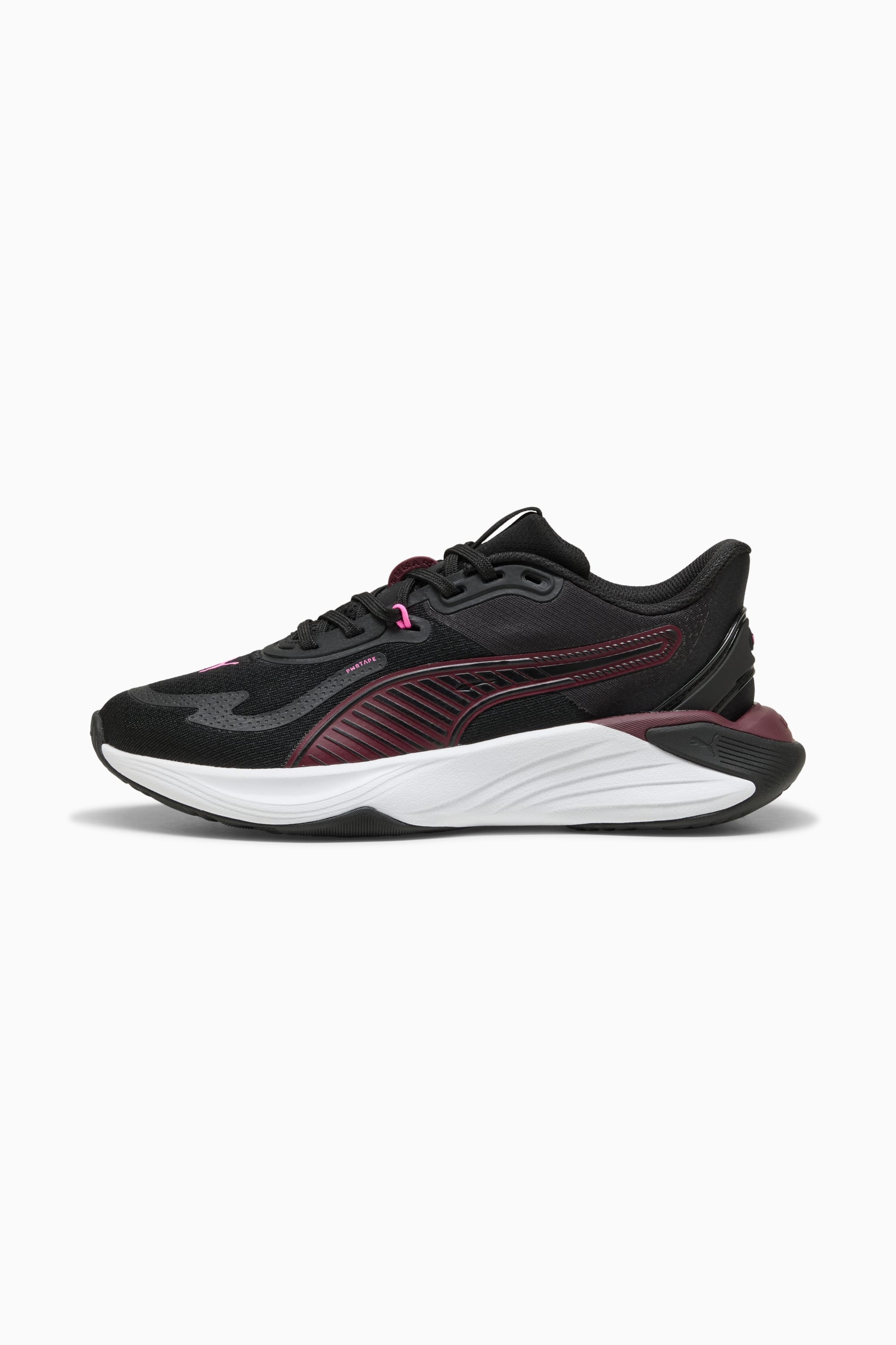 PRODUCT STORY Introducing your new go-to training shoe, the PWR Hybrid TR. This latest footwear innovation is made with PUMAGRIP for best-in-class traction and PROFOAM for unparalleled comfort during long sessions. Start your next workout off on the right foot in PWR Hybrid TR. FEATURES & BENEFITS - The upper of the shoes is made with at least 30% recycled materials - PUMAGRIP: Durable performance rubber compound designed for all-surface traction - PWRTAPE: Targeted upper reinforcement for support and durability - PROFOAM: Lightweight EVA designed to cushion your landing and propel your next step DETAILS - Style: 310477_08 - Color: PUMA Black-Ruby Shimmer-Pink Pixel - Regular width - Textile upper - Lace closure - Heel-to-toe drop: 8mm - Recommended for: neutral pronators - PUMA branding details MATERIAL INFORMATION - Midsole: 100% Synthetic - Sockliner: 100% Textile - Outsole: 100% Rubber - Upper: 55% Textile, 45% Synthetic - Lining: 100% Textile