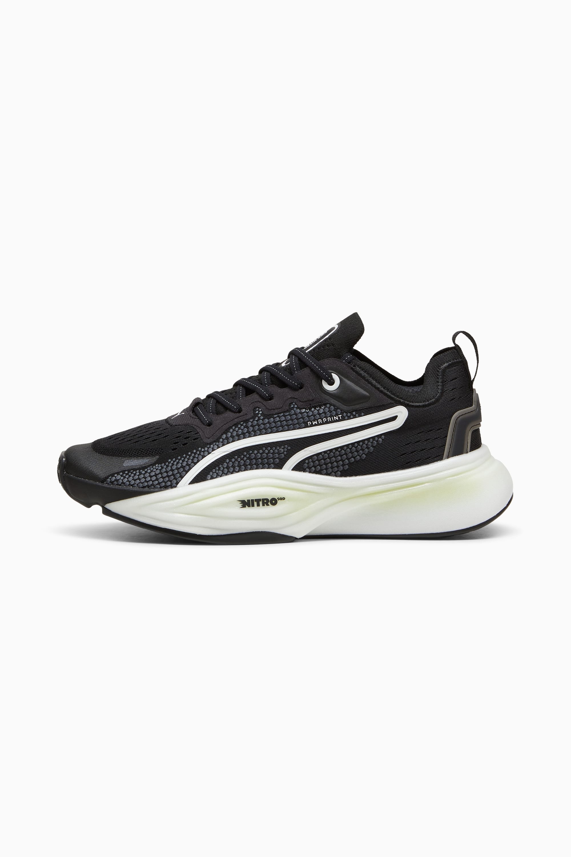 PRODUCT STORY Train hard and push your limits in the PWR NITRO™ SQD 2. NITRO™ SQD technology gives explosive energy and all-around support. PUMAGRIP traction grips any surface. Unlock peak performance and smash through plateaus. These training shoes unleash your power. FEATURES & BENEFITS - The upper of the shoes is made with at least 20% recycled materials - NITRO™ SQD: Innovative dual density NITRO™ SQD midsole combines best in-class cushioning and rebound with all around support – ideal for quick first step and explosive take-off - PUMAGRIP: Durable performance rubber compound designed for all-surface traction DETAILS - Style: 310150_01 - Color: PUMA Black-PUMA White - Regular fit - Engineered mesh upper - Heel support system - Lace closure - PUMA branding details
