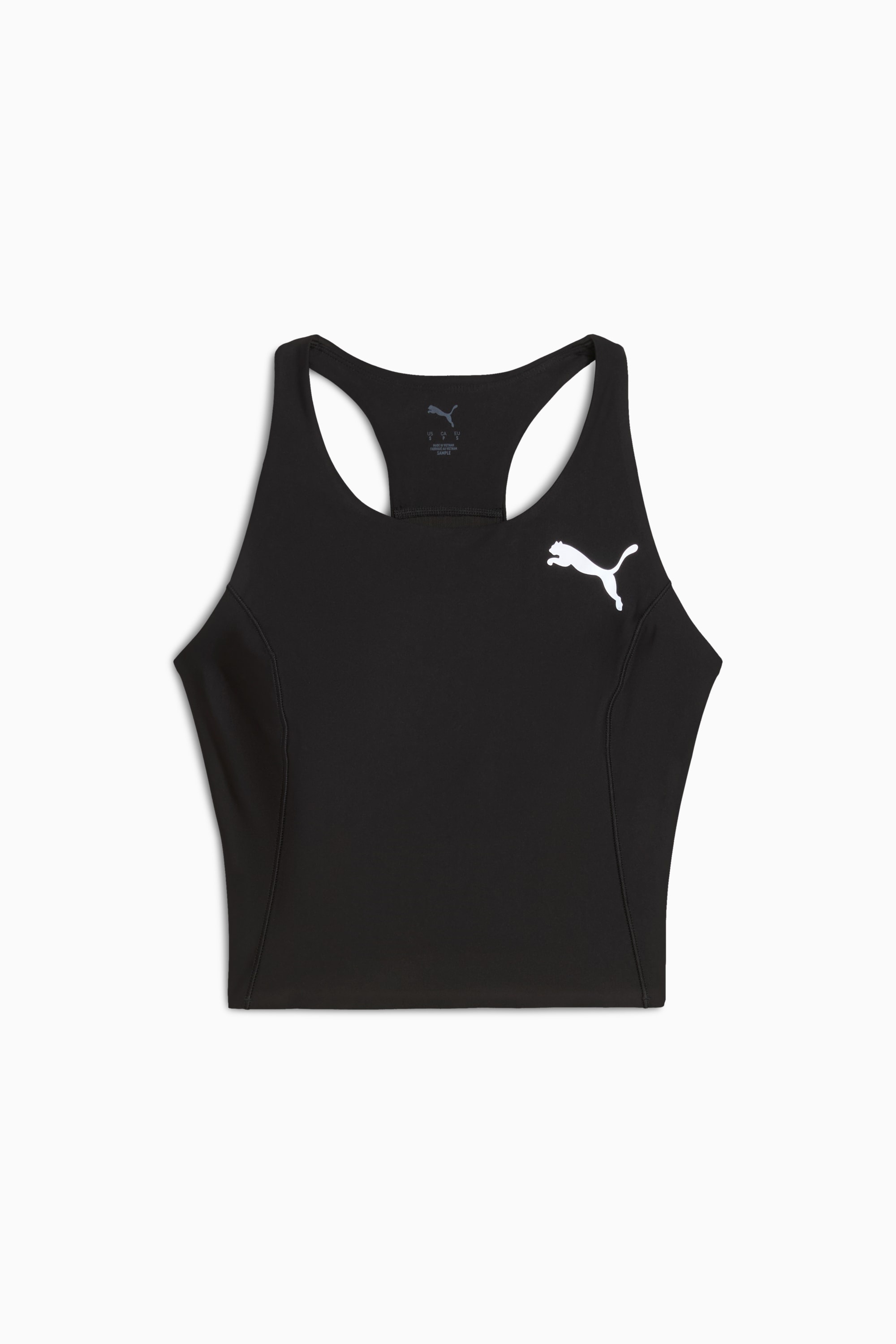 PRODUCT STORY Push for that PB with compressive ULTRAFORM fabric that sculpts and supports. dryCELL tech keeps you cool as the race heats up, while the back cut-out detail adds ventilation and edge. Designed to perform, built to inspire. FEATURES & BENEFITS - dryCELL: Performance technology designed to wick moisture from the body and keep you free of sweat during exercise - ULTRAFORM: Compressive yet stretchy fabric with contouring designs that perfectly shapes a woman's natural curves. - Made with at least 50% recycled materials. DETAILS - Style: 527532_01 - Color: PUMA Black - Fit: Tight - Main material: Tricot - Neck: Crew neck - Sleeveless - Length: Cropped MATERIAL INFORMATION - Inserts: 87% polyester, 13% elastane - Shell: 77% polyester, 23% elastane - Top Waistband: 83% nylon, 17% elastane