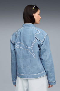 PRODUCT STORY This is the FUTURE.PUMA.ARCHIVE. This street-inspired collection blends the spirit of our past with the limitless possibilities of our future. Retro yet modern, these styles are here to make a statement. FEATURES & BENEFITS - Made with at least 50% recycled materials. DETAILS - Style: 632163_34 - Color: Cool Blue - Fit: Oversized - Main material: Ripstop - Neck: Stand-up collar with hook-and-loop closure - Long sleeves with adjustable hook-and-loop detail on the cuffs - Fastener: Full zip - Length: Regular - Hook-and-loop detail on the hem - Pockets: Welt pockets with inner zipper MATERIAL INFORMATION - Lining: 100% polyester - Shell: 60% cotton, 40% polyester - Filling: 100% polyester