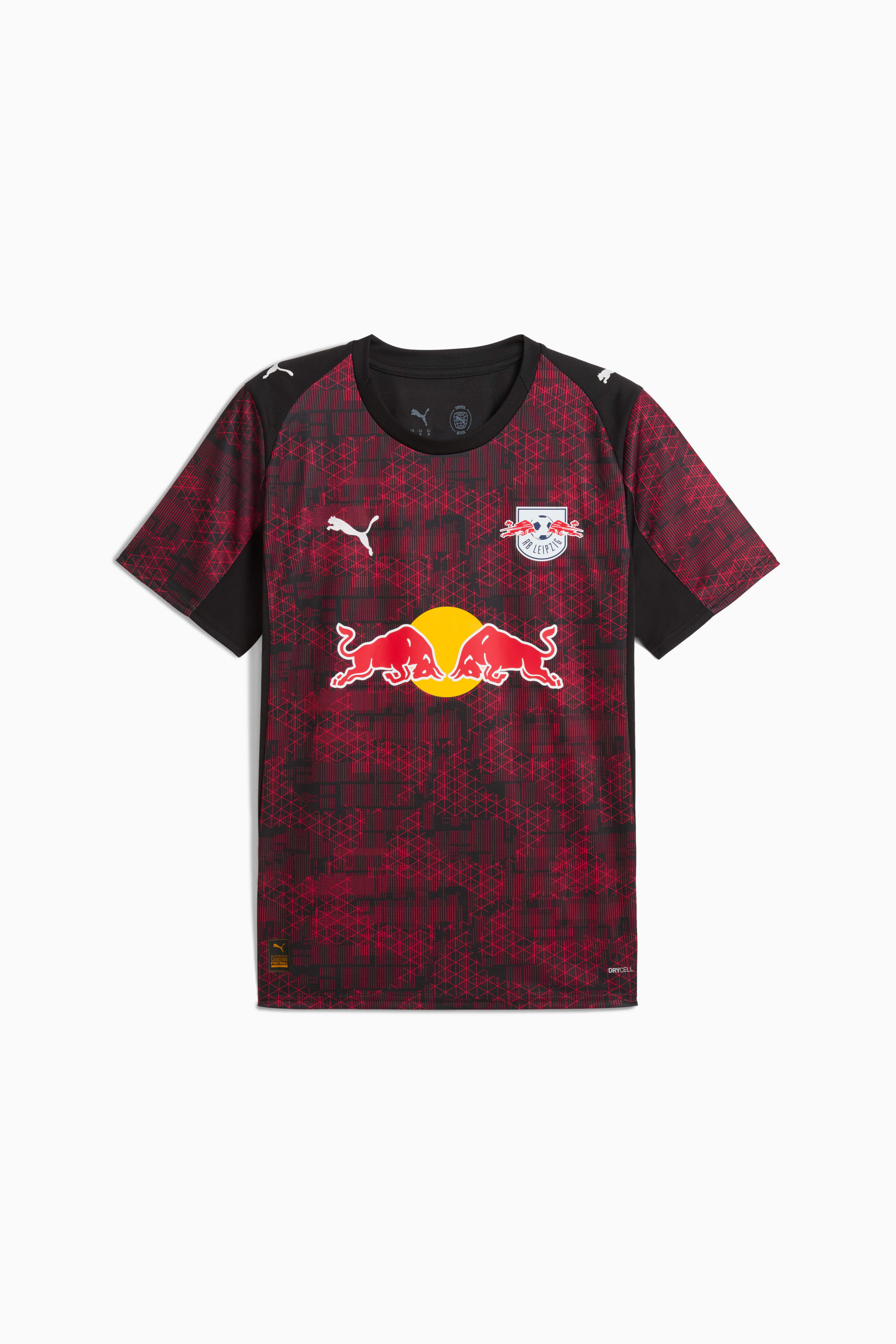 PRODUCT STORY Inspired by Leipzig's modern architecture and advanced technology, the Third jersey reflects the city's progressive spirit. Featuring a sleek, futuristic design, the jersey honors Leipzig's dynamic culture and unwavering commitment to innovation. Lighting up the field with a bold, forward-thinking mindset, this jersey captures the essence of the city, its people, and the ambitious vision of the club. FEATURES & BENEFITS - dryCELL: Highly functional materials draw sweat away from your skin and help keep you dry and comfortable during exercise - As part of the RE:FIBRE program, this garment is made of at least 95% recycled material from textile waste and other used materials DETAILS - Style: 779885_03 - Color: PUMA Black-Fast Red - Fit: Regular - Main material: Double face jacquard - Neck: Crew neck - Short sleeves - Length: Regular - Club and PUMA branding details MATERIAL INFORMATION - Shell: 100% polyester - Rib: 100% polyester
