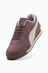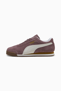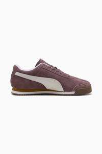 PRODUCT STORY We're bringing back an icon. Born in 1968, the PUMA Roma was originally created to celebrate the Italian Euro Cup win – and become a sport-turned-street sensation overnight. Today, over 50 years later, the Roma is back with its signature sleek look and gum rubber sole. This version features a suede upper with suede overlays, a thick padded tongue, and orthopaedic arch supports. FEATURES & BENEFITS - PUMA's leather products support responsible manufacturing via the Leather Working Group: www.leatherworkinggroup.com - ProFoam: Lightweight EVA designed to cushion your landing and propel your next step DETAILS - Style: 398635_11 - Color: Raisin-PUMA White - Regular fit - Suede upper - Suede and synthetic overlays - Mesh lining - Lace closure - EVA midsole - Suede PUMA Formstrip with tumbled finish - PUMA branding details