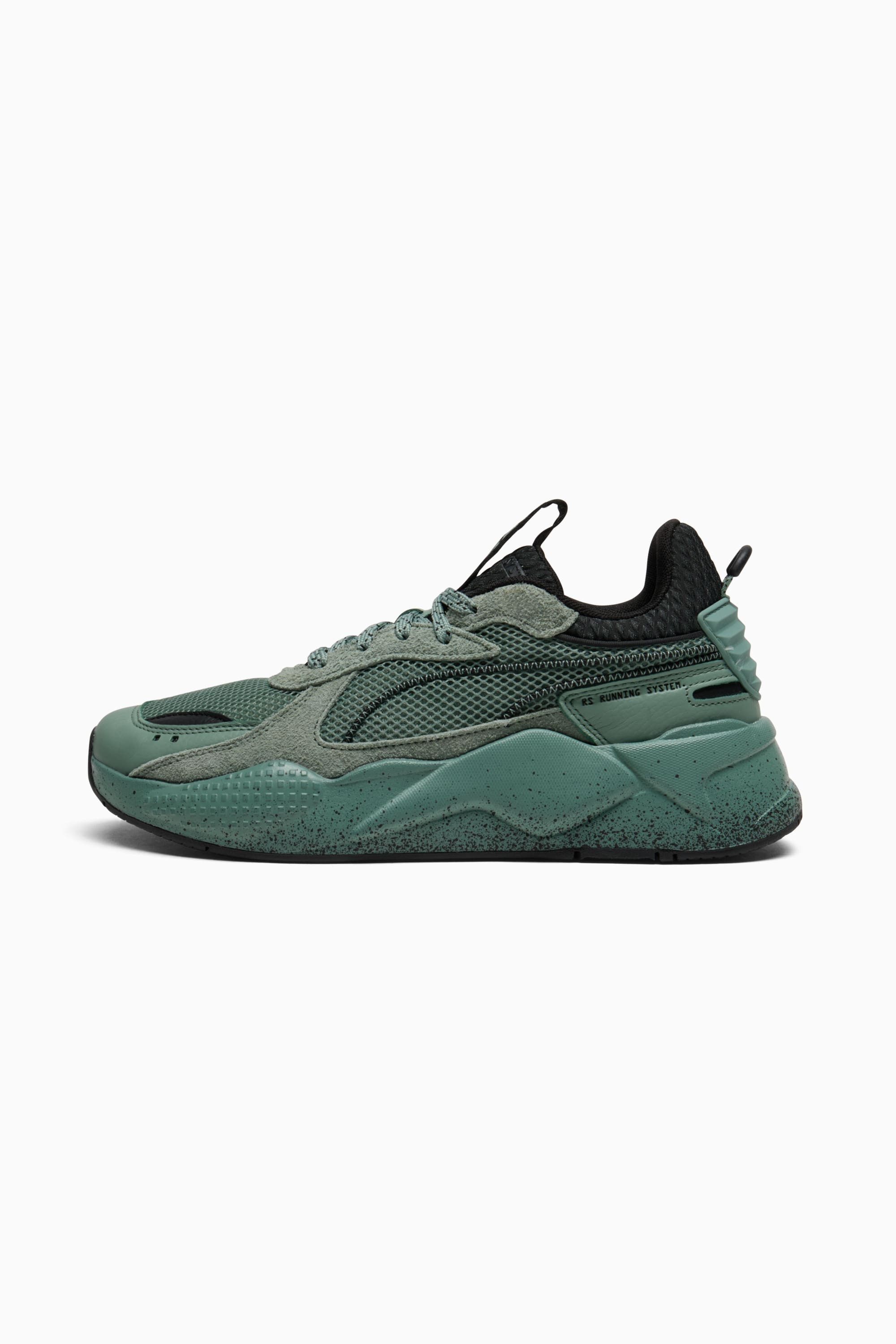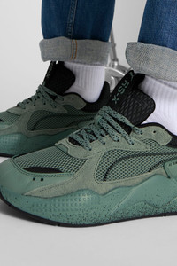 PRODUCT STORY The RS family is getting wider. Make a statement with these sneakers, outfitted with a woven mesh base and textile upper. Lace up and get ready for your next adventure. DETAILS - Style: 403465_01 - Color: Green Moon-PUMA Black - Lace closure - Regular fit - Rubber outsole - Leather upper - PUMA branding details MATERIAL INFORMATION - Midsole: 100% Synthetic - Sockliner: 100% Textile - Outsole: 100% Rubber - Upper: 49.41% Leather - cow, 43.88% Textile, 6.71% Rubber - Lining: 100% Textile