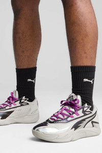 PRODUCT STORY Scoot Henderson’s signature shoe, Scoot Zeros II, gets an allover silver color up for the Scoot Zeros II Sterling. Taking cues from Scoot’s shifty style of play and his personal mantra (‘O.D.D: Overly Determined to Dominate’), the Scoot Zeros II is packed with cutting-edge technology to deliver exceptional traction, stability, and energy return for fast-paced, end-to-end play. Inspired by Scoot’s first name, this version is wrapped in metallics for an eye-catching look on and off the court. DETAILS - Style: 311351_01 - Color: Feather Gray-Wild Berry - Regular width - Upper materials mix with synthetic suedes and mesh - Lace closure - Fast eyestay on the upper showcases the spirit and drive of car culture - Blend of synthetic suedes and mesh for a premium, performance-driven upper - Scoot Henderson branding details - PUMA branding details MATERIAL INFORMATION - Midsole: 100% Synthetic - Sockliner: 100% Textile - Outsole: 100% Rubber - Upper: 52.02% Textile, 47.98% Synthetic - Lining: 100% Textile