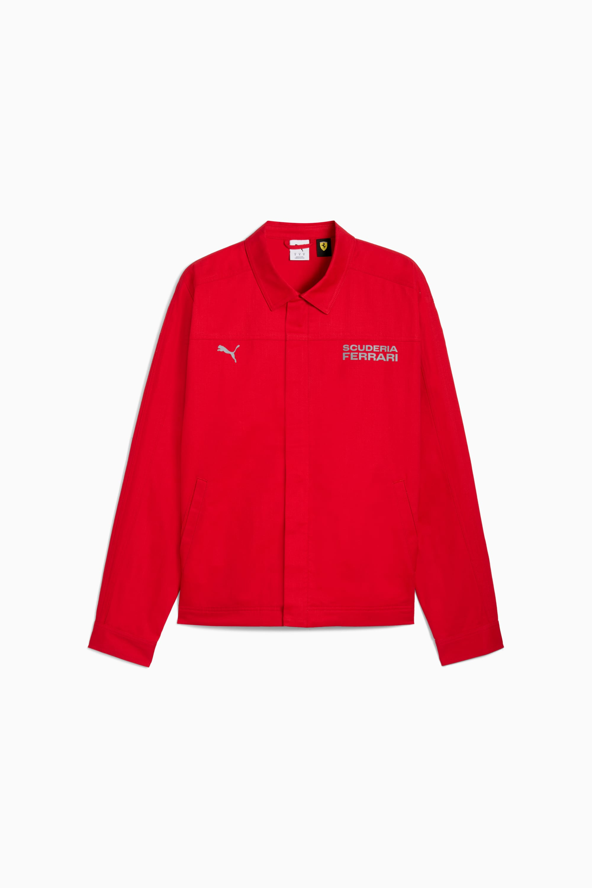 PRODUCT STORY Unleash your inner racer with PUMA for SCUDERIA FERRARI HP. The latest collection blends the thrill of the track with street-ready sophistication. Designed for fans who appreciate sleek, casual, and refined everyday wear, it captures Scuderia Ferrari HP’s racing legacy through clean lines, oversized silhouettes, and understated elegance. FEATURES & BENEFITS - Made with at least 50% recycled materials. DETAILS - Style: 632749_02 - Color: Rosso Corsa - Fit: Relaxed - Standard Jacket length - Main material type: Twill weave - Full-zip closure - Pockets: Zip pockets - SCUDERIA FERRARI HP branding details MATERIAL INFORMATION - Lining: 100% polyester - Shell: 100% cotton - Lower Pocket Bag: 100% cotton