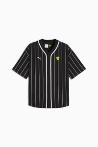 PRODUCT STORY The PUMA and Scuderia Ferrari collection is a tribute to motorsport excellence and Ferrari's legendary racing heritage. This range of shoes, clothes, and accessories combines style, comfort, and performance with the iconic Scuderia Ferrari colours and details, so you can embrace the Ferrari legacy wherever you go. This baseball jersey is ready for wherever the adrenaline takes you. FEATURES & BENEFITS - Made with at least 20% recycled cotton. DETAILS - Style: 635866_03 - Color: PUMA Black - Fit: Relaxed - Main material type: Single jersey - Neck: Crew neck - Short sleeves - Closure: Button placket - Length: Regular MATERIAL INFORMATION - Inserts: 100% cotton - Shell: 100% cotton