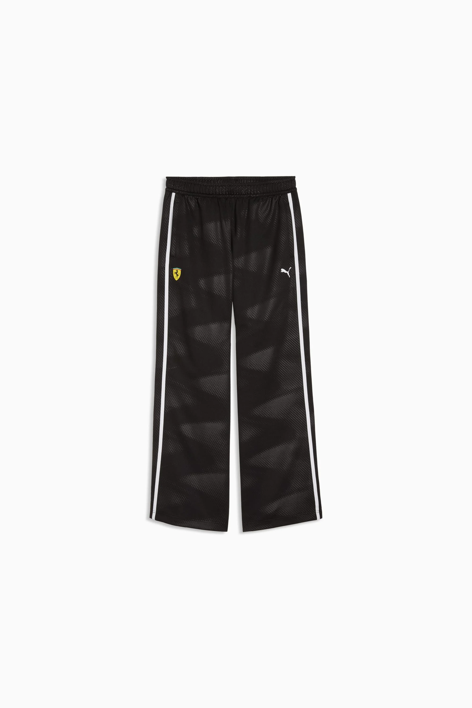 PRODUCT STORY The PUMA and Scuderia Ferrari collection is a tribute to motorsport excellence and Ferrari's legendary racing heritage. This range of shoes, clothes, and accessories combines style, comfort, and performance with the iconic Scuderia Ferrari colours and details, so you can embrace the Ferrari legacy wherever you go. These track pants have a precision cut, straight legs and elasticated hems to keep you looking sharp from race day to nights out. FEATURES & BENEFITS - As part of the RE:FIBRE program, this garment is made of at least 95% recycled material from textile waste and other used materials. DETAILS - Style: 634233_01 - Color: PUMA Black - Fit: Regular - Main material type: Double pique - Length: Regular - Rise: Medium - Elasticated hems MATERIAL INFORMATION - Upper Pocket Bag: 100% Polyester - Lower Pocket Bag: 100% Polyester - Shell: 100% Polyester