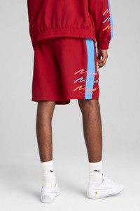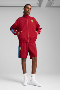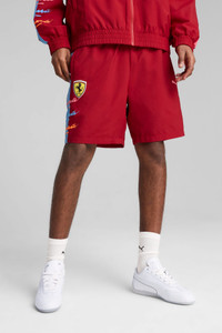 PRODUCT STORY Borrowing from the world of away kits, PUMA for SCUDERIA FERRARI HP is back with a limited-edition drop in an alternative white colorway – pulled from the accent color of the 2025 car livery. Featuring replica tees and caps worn by Lewis Hamilton and Charles Leclerc, it’s made for fans who never leave the Prancing Horse at home. FEATURES & BENEFITS - Made with 100% recycled material excluding trims & decorations DETAILS - Style: 633407_02 - Color: Dark Crimson - Regular fit - Plain weave - Above knee length - Elasticated waistband with drawcords - Medium rise - Zip Pocket - Miami wording print on leg - PUMA Cat logo and Scuderia Ferrari shield on the front thigh MATERIAL INFORMATION - Body Lining: 100% polyester - Shell: 100% polyester - Pocket Bag: 100% polyester