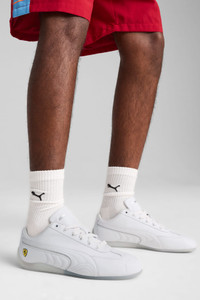 PRODUCT STORY A PUMA classic inspired by the speed of the racetrack: the Speedcat. It stands out from the crowd with its race-shoe inspired shape and sleek lines that look fast and bold. Bring motorsport to the street and own the low profile trend with this new version of the iconic silhouette. This Scuderia Ferrari Miami version comes with a special shoebox and collectable postcard. DETAILS - Style: 309037_01 - Color: PUMA White-PUMA White - Regular width - Textile upper - Lace closure with 4 different lace options - Sockliner with Miami details - Semi-transparent outsole - Comes with special Miami shoebox and collectable postcard - Scuderia Ferrari and PUMA branding details