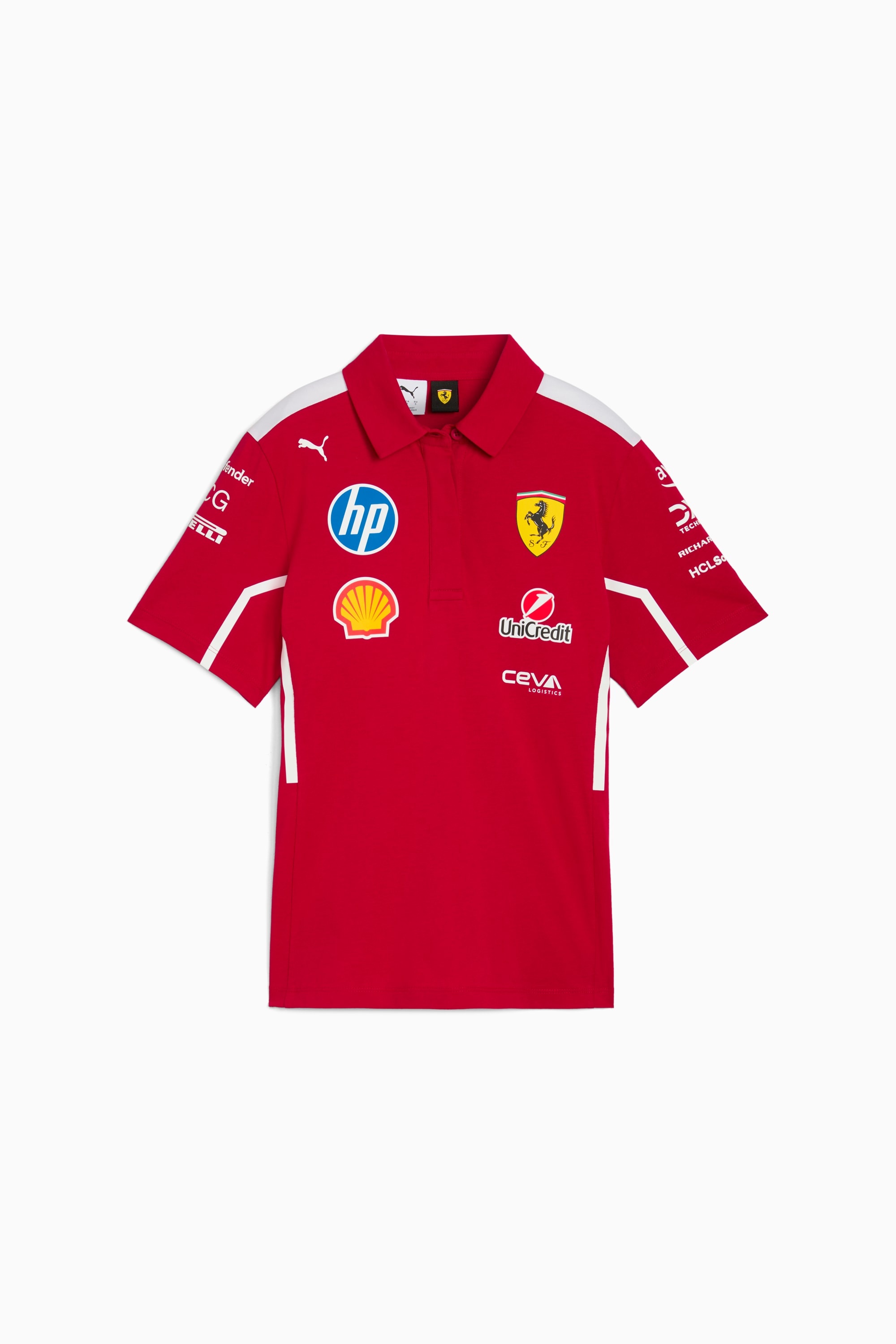 PRODUCT STORY Two legends, twenty years of burning rubber. Celebrate the 20th anniversary of PUMA for SCUDERIA FERRARI HP with the 2025 Replica Collection. Embrace the combination of performance and elegance with this sleek polo. Show your support for Scuderia Ferrari HP in their new darker red livery. Featuring heat-transfer sponsor logos and a regular fit, it's perfect for those who live life in the fast lane. PUMA brings the passion. Tifosi, welcome to the crew. FEATURES & BENEFITS - Made with at least 30% recycled materials DETAILS - Style: 763948_01 - Color: Dark Cherry - Regular fit - Single jersey material - Regular length - Standard polo collar - Button placket - Short sleeves - Heat transfer sponsor logo application - PUMA and Scuderia Ferrari branding details MATERIAL INFORMATION - Inserts: 100% polyester - Shell: 100% cotton