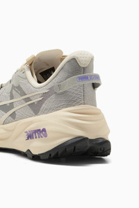 PRODUCT STORY Introducing the PUMA Fast-Trac 3, the ultimate low-profile trail running companion. Featuring a full-length NITROFOAM™ midsole for responsive cushioning, 4mm PUMAGRIP ATR lugs for unbeatable traction, and a comfortable rolled collar upper, this shoe will elevate your trail running experience. The upper features GORE-TEX® invisible fit, for a lightweight solution to keep feet dry and comfortable under any conditions. Conquer any terrain with confidence in the PUMA Fast-Trac NITRO™ 3. FEATURES & BENEFITS - The upper of the shoes is made with at least 30% recycled materials - NITROFOAM™: Advanced nitrogen-infused foam designed to provide superior responsiveness and cushioning in a lightweight package - PUMAGRIP ATR: Trail-ready performance rubber compound designed for traction on ice, mud, and unstable surfaces DETAILS - Style: 379795_03 - Color: Gray Echo-Alpine Snow-Dark Amethyst - Regular fit - GORE-TEX Waterproof membrane - Heel-to-toe drop: 8mm - Weight: 272g - Stack height: 31mm/23mm - Recommended for: neutral pronators MATERIAL INFORMATION - Sockliner: 100% Synthetic - Outsole: 100% Rubber - Upper: 69.56% Textile, 30.44% Synthetic - Lining: 100% Textile