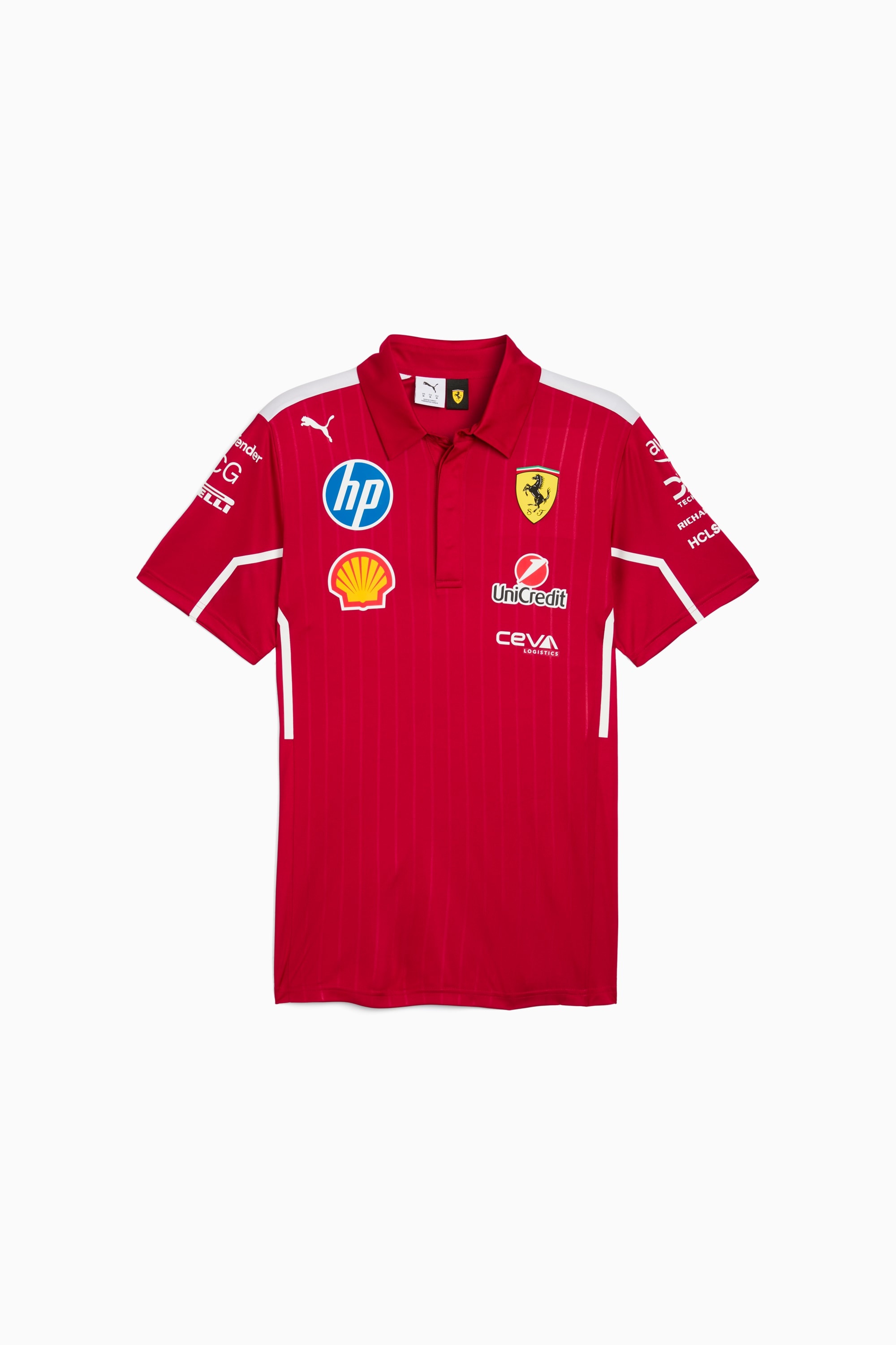 PRODUCT STORY Two legends, twenty years of burning rubber. Celebrate the twentieth anniversary of PUMA for SCUDERIA FERRARI HP with the 2025 Replica Collection. Gear up for the new season with the Scuderia Ferrari HP collection by PUMA. This sleek polo features a darker red livery, heat transfer logos, and a silicon shield design, combining German performance with Italian elegance. It's the exact style worn by the team around the track for the 2025 season. Tifosi, welcome to the team! DETAILS - Style: 763938_01 - Color: Dark Cherry - Regular fit - Interlock material - Regular length - Standard polo collar - Button placket - Short sleeves - Silicon Shield execution - Heat transfer logo application - PUMA and Scuderia Ferrari branding details MATERIAL INFORMATION - Shell: 100% polyester