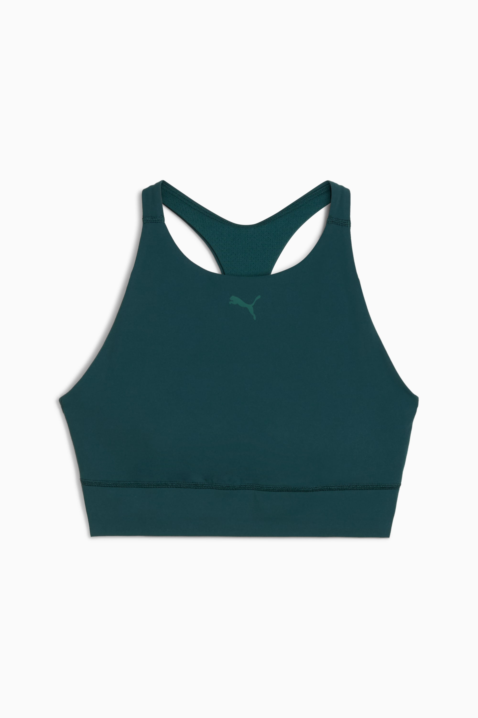 PRODUCT STORY Own your workout with high-neck coverage and medium-impact support. Made with SHAPELUXE for a smooth, form-fitting feel and LYCRA® ADAPTIV fiber for unrestricted movement. Removable pads and dryCELL technology keep you comfortable and dry, from studio sessions to daily errands. FEATURES & BENEFITS - dryCELL: Performance technology designed to wick moisture from the body and keep you free of sweat during exercise - LYCRA® ADAPTIV: Fibre in an innovative, engineered seamless construction delivers on fit and shape retention while providing form-fitting compression that moves with you - Made with at least 50% recycled materials. DETAILS - Style: 528138_75 - Color: Green Terrain - Fit: Tight - Main material: Interlock - High neck - Removable pads - Support: recommended for mid-impact workouts. MATERIAL INFORMATION - Lining: 94% polyester, 6% elastane - Shell: 82% nylon, 18% elastane