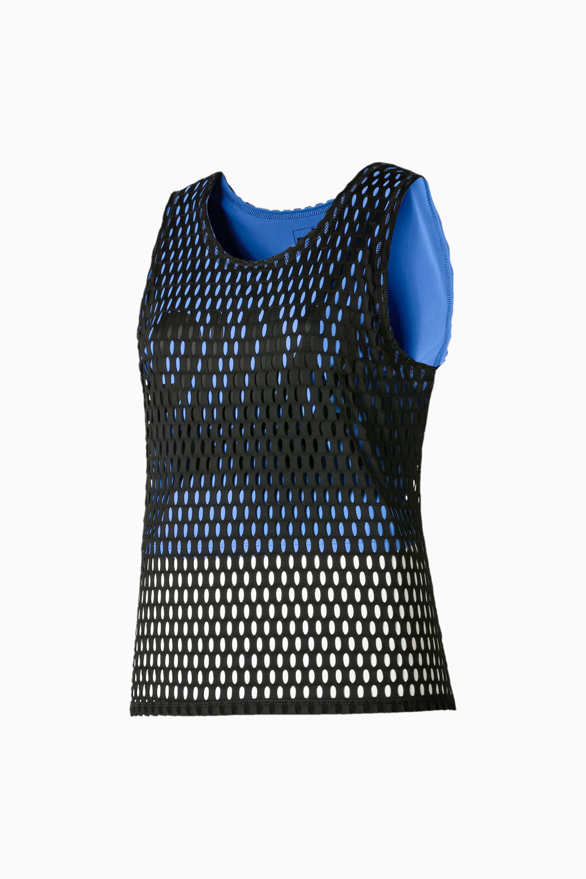 PRODUCT STORY Talk about a breezy workout: this SHIFT Mesh Women's Training Tank Top is all about keeping you aerated. The mesh overlay allows your skin to breathe, and PUMA's dryCELL tech keeps you dry by slicking away moisture and sweat as you move. Flatlock Stitching ups the comfort factor and prevents rubbing, and the racerback cut promotes movement and flexibility. A seasonal PUMA graphic on the front peeks out through the mesh outer. MATERIAL INFORMATION - INNER SHELL: 84% polyester, 16% elastane