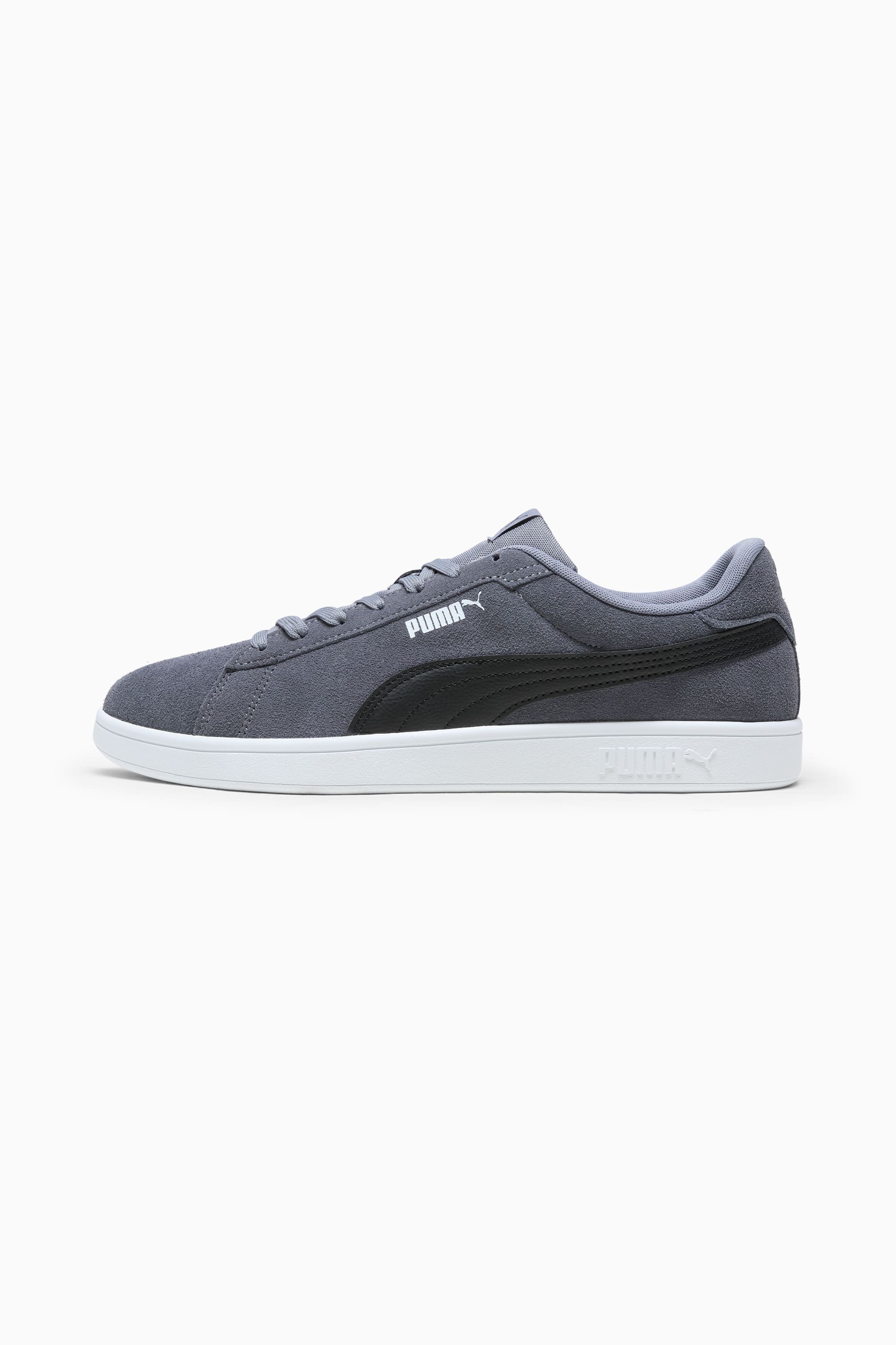 PRODUCT STORY The tennis-inspired Smash is back and better than ever, featuring its classic silhouette, with long, clean lines, and an updated padded collar and sockliner. FEATURES & BENEFITS - LWG: The leather sourced in this product comes from environmentally responsible leather manufacturing and is audited and certified via the Leather Working Group protocol - SOFTFOAM+: Step-in comfort sockliner designed to provide soft cushioning thanks to its extra thick heel DETAILS - Style: 390984_08 - Color: Gray Tile-PUMA Black-PUMA White - Suede upper - Updated eyestay design - Stitched-through and padded collar - Lace closure for a snug fit - PUMA No. 1 Logo on tongue - PUMA No. 2 Logo on quarter - PUMA Formstrip on medial and lateral sides - PUMA Cat Logo on heel MATERIAL INFORMATION - Sockliner: 100% Textile - Outsole: 100% Rubber - Upper: 78.63% Leather - cow, 18.58% Synthetic, 2.79% Textile - Lining: 100% Textile