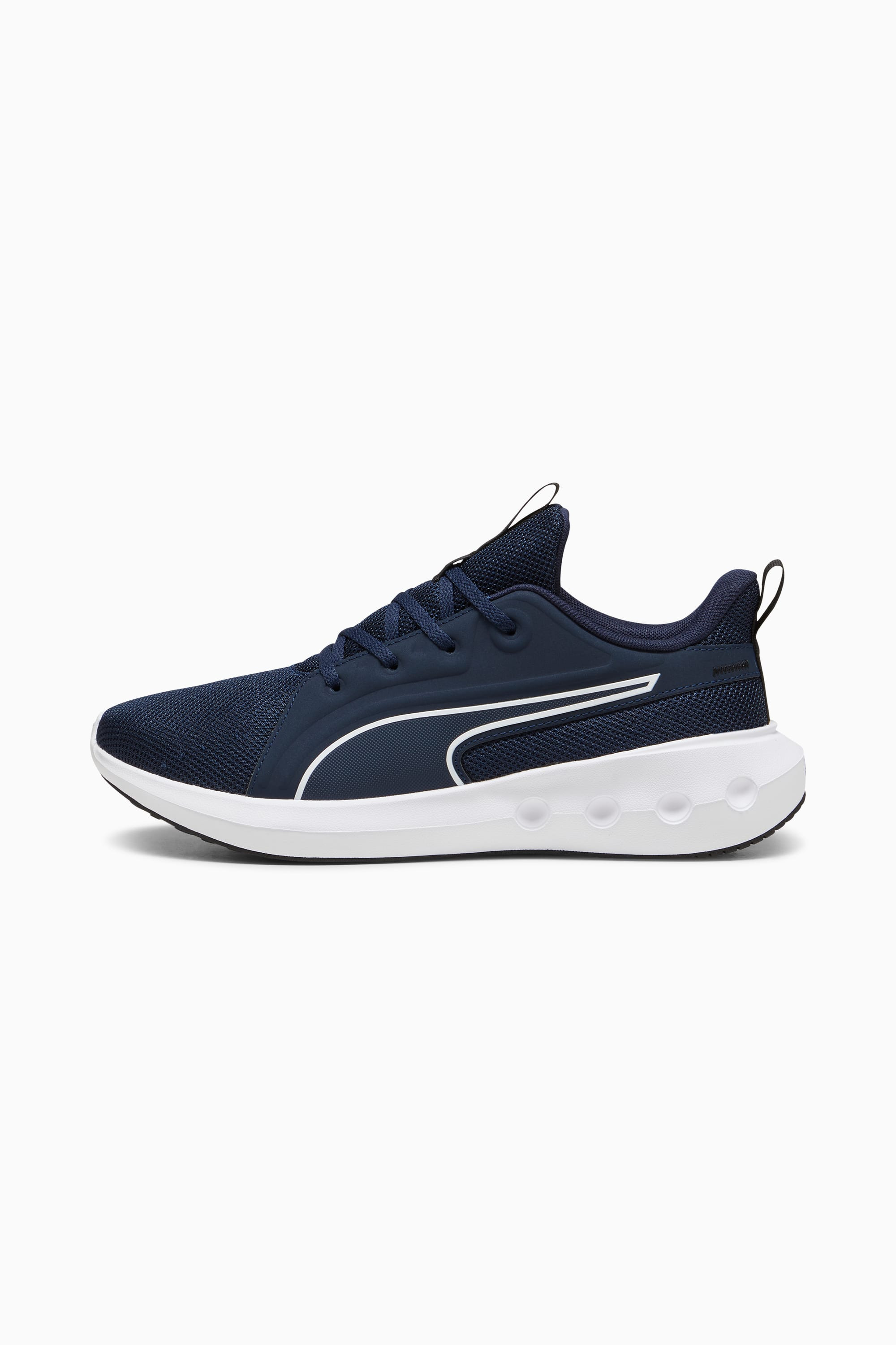 PRODUCT STORY Glide through miles in sublime comfort. SOFTRIDE and SOFTFOAM+ technologies deliver our softest, most cushioned ride yet. This iconic silhouette is reborn for high-performance comfort on and off the road. Whether you're racking up kilometres or heading out for the day, the SOFTRIDE Carson keeps you feeling fresh from the moment you step in. FEATURES & BENEFITS - The upper of the shoes is made with at least 20% recycled materials - SOFTFOAM+: Step-in comfort sockliner designed to provide soft cushioning thanks to its extra thick heel - SOFTRIDE: Soft foam designed for all-day cushioning and comfort DETAILS - Style: 310154_02 - Color: Club Navy-PUMA White-PUMA Black - Lace closure - Recycled mesh upper - Heel-to-toe drop: 12mm - Surface type: Road running - Recommended for: neutral pronators MATERIAL INFORMATION - Midsole: 100% Synthetic - Sockliner: 100% Textile - Outsole: 100% Rubber - Upper: 54% Synthetic, 46% Textile - Lining: 100% Textile