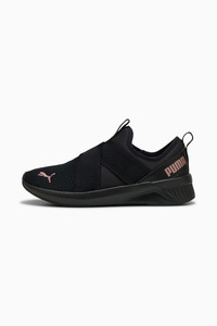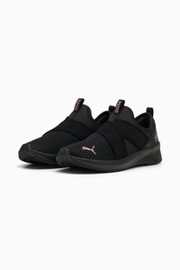 PRODUCT STORY Effortless style meets unbeatable comfort with these slip-on shoes. Featuring SOFTRIDE cushioning, SOFTFOAM+ sockliner, and zoned rubber traction, these shoes are perfect for your dynamic lifestyle. Premium details and an asymmetrical gore band add a sophisticated touch to every step. FEATURES & BENEFITS - SOFTFOAM+: Step-in comfort sockliner designed to provide soft cushioning thanks to its extra thick heel - The upper of the shoes is made with at least 30% recycled materials. DETAILS - Style: 311471_04 - Color: PUMA Black-PUMA Black-Rose Gold - Regular width - Textile upper - Slip on - Cushioning level: Medium - PUMA branding details MATERIAL INFORMATION - Midsole: 100% Synthetic - Sockliner: 100% Textile - Outsole: 62.45% Synthetic, 37.55% Rubber - Upper: 87.08% Textile, 12.92% Synthetic - Lining: 100% Textile