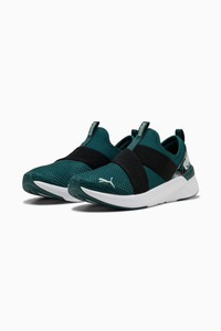 PRODUCT STORY Designed for those who value both performance and style, these sneakers provide unmatched cushioning and support. Slip into effortless fashion with these slip-ons. Featuring SOFTFOAM+ cushioning for a soft, comfortable feel all day long, they're perfect for morning runs or casual walks. FEATURES & BENEFITS - SOFTRIDE: Soft foam designed for all-day cushioning and comfort - SOFTFOAM+: Step-in comfort sockliner designed to provide soft cushioning thanks to its extra thick heel - The upper of the shoes is made with at least 30% recycled materials. DETAILS - Style: 311953_02 - Color: Green Terrain-PUMA Black-Light Moss - Width: Regular - Toe Type: Rounded - Fastener: Slip on - Main material of upper: Textile - Heel type: Flat - Lining: Textile - Cushioning: Medium - Heel-to-toe drop: 6mm MATERIAL INFORMATION - Midsole: 100% Synthetic - Sockliner: 100% Textile - Outsole: 62.45% Synthetic, 37.55% Rubber - Upper: 87.41% Textile, 12.59% Synthetic - Lining: 100% Textile