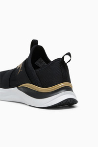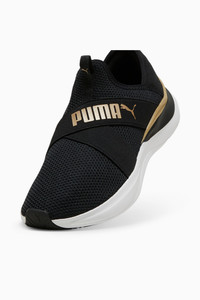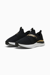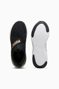 PRODUCT STORY The SOFTRIDE Harmony is a women-specific everyday lightweight trainer designed to help women tackle their entire day. With our SOFTRIDE foam midsole, this versatile trainer provides all-day comfort. The upper features an easy slip-on construction and a design that's an evolution rather than a complete reimagining. Feminine. Simple. Functional. FEATURES & BENEFITS - SOFTRIDE: Soft foam designed for all-day cushioning and comfort - SOFTFOAM+: Step-in comfort sockliner designed to provide soft cushioning thanks to its extra thick heel - The upper of the shoes is made with at least 20% recycled materials. DETAILS - Style: 379606_01 - Color: PUMA Black-PUMA White - Midsole: SOFTRIDE foam - Upper: lightweight design with elastic strap - Closure: Slip on - Rounded toe - PUMA wordmark across the upper MATERIAL INFORMATION - Midsole: 100% Synthetic - Sockliner: 100% Textile - Outsole: 74% Synthetic, 26% Rubber - Upper: 95.16% Textile, 4.84% Synthetic - Lining: 100% Textile