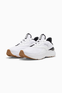 PRODUCT STORY SOFTRIDE Mayve utilizes our plush and comfortable SOFTRIDE foam and SOFTFOAM+ footbed, ensuring all-around comfort. This style features a clamshell construction, premium knitted upper material, mixed with premium finishes throughout the upper. With a unique eyestay and deco-stitching, enjoy fashion without sacrificing comfort. It's all in the new SOFTRIDE Mayve running shoe. FEATURES & BENEFITS - The upper of the shoes is made with at least 20% recycled materials - SOFTFOAM+: Step-in comfort sockliner designed to provide soft cushioning thanks to its extra thick heel - SOFTRIDE: Soft foam designed for all-day cushioning and comfort DETAILS - Style: 310160_02 - Color: PUMA White-PUMA Black-PUMA Silver - Lace closure - Zoned rubber traction - Heel-to-toe drop: 9mm - Surface type: Road running - Recommended for: neutral pronators MATERIAL INFORMATION - Midsole: 100% Synthetic - Sockliner: 100% Textile - Outsole: 59.10% Synthetic, 40.90% Rubber - Upper: 74.45% Textile, 25.55% Synthetic - Lining: 100% Textile